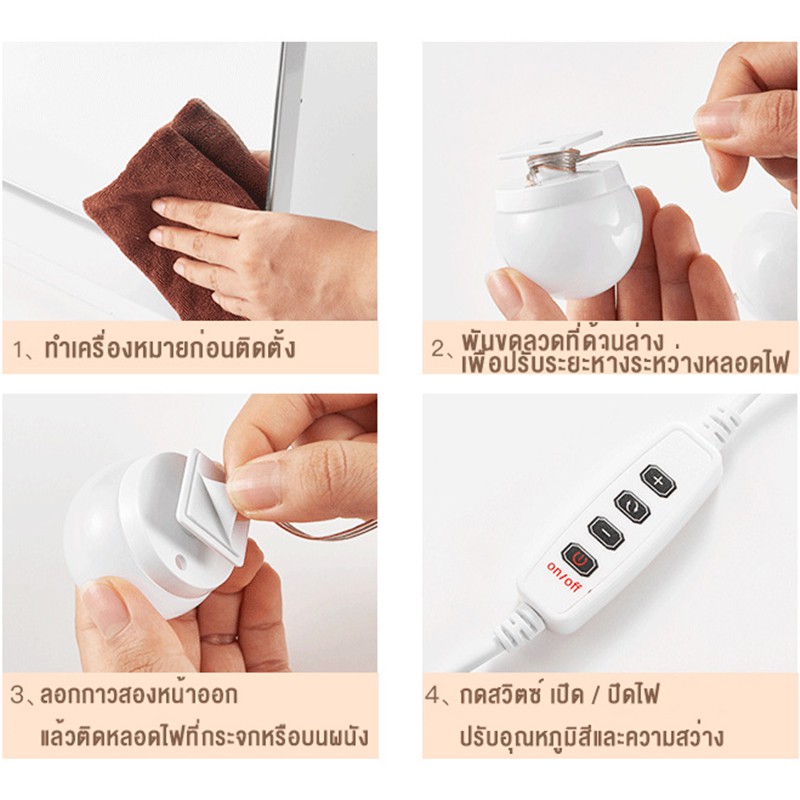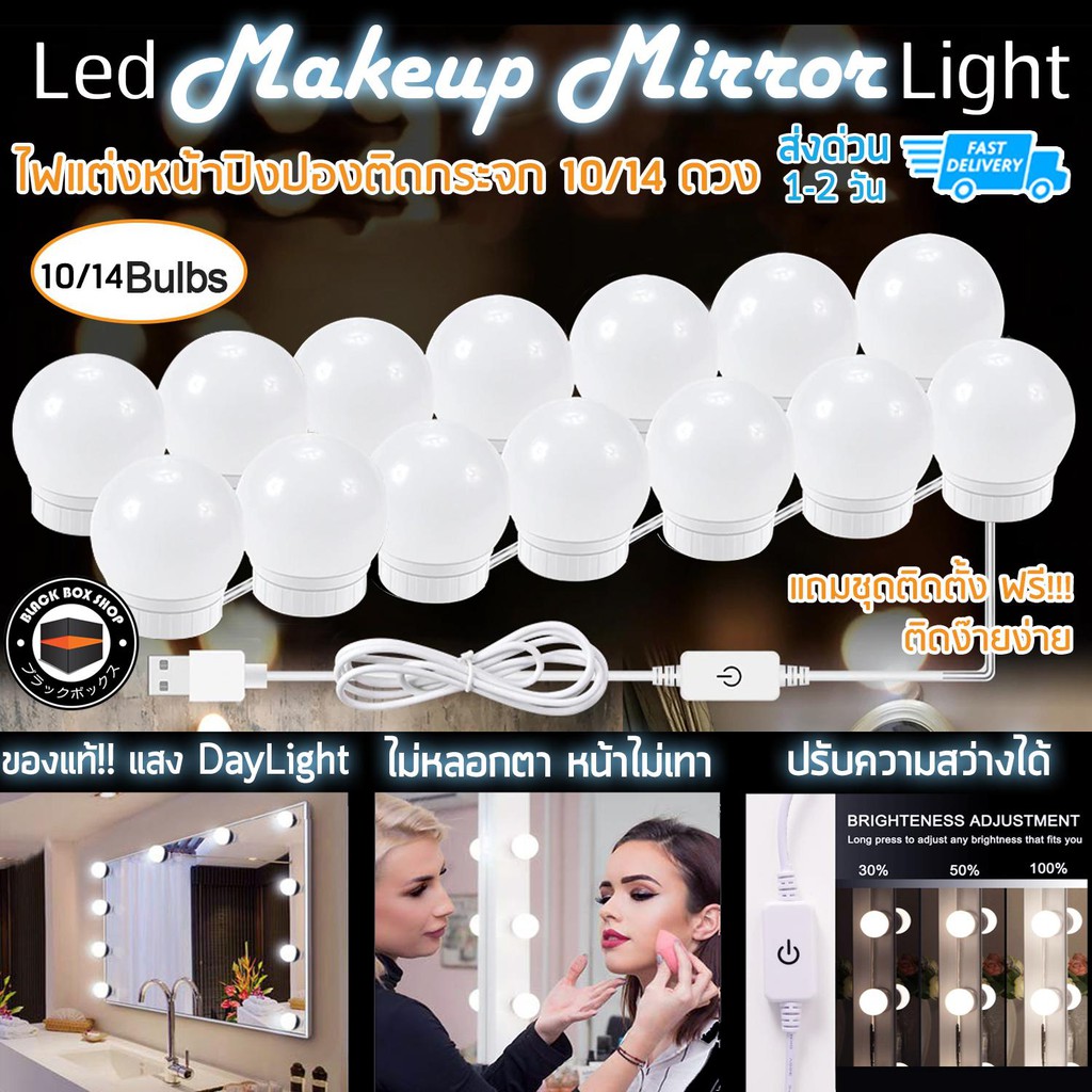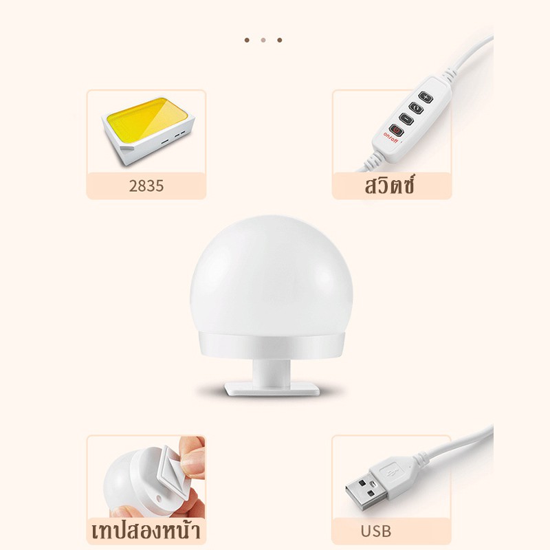 ✨Hot✨ เตรียมจัดส่ง ไฟติดกระจกแต่งหน้า ไฟติดโต๊ะเครื่องแป้ง ไฟแต่งหน้า ไฟติดกระจก หลอดไฟ 10 ดวง ปรับแสง 3 สี makeup light