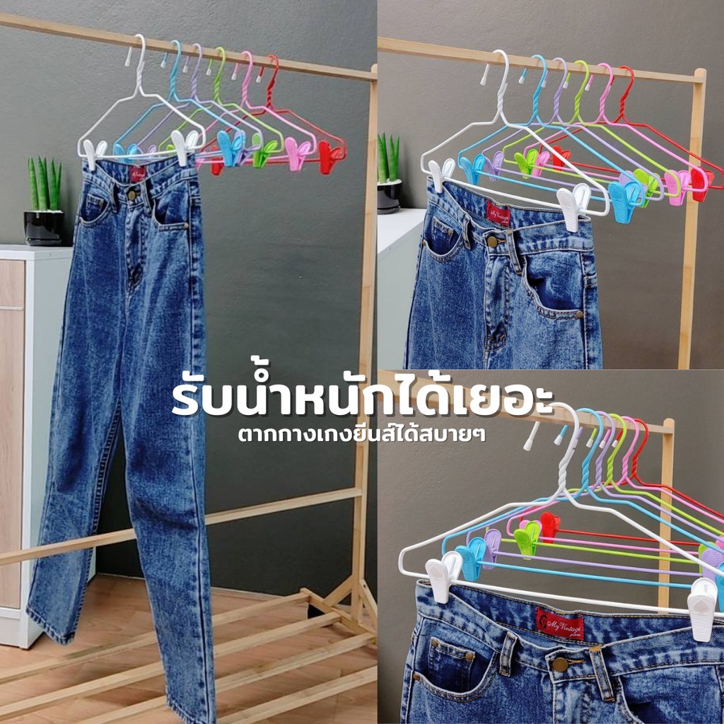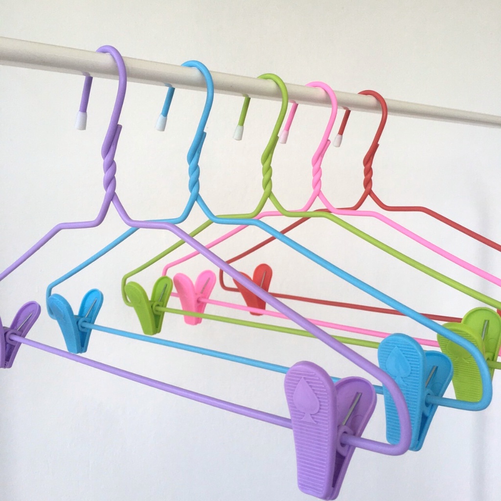 ไม้แขวนแบบหนีบ แขวนกระโปรง กางเกง ไม้แขวนลวดหุ้มพลาสติก แพ็ค 6 ชิ้น #No.99