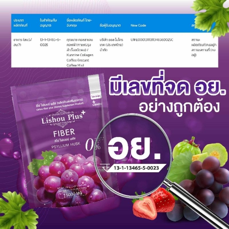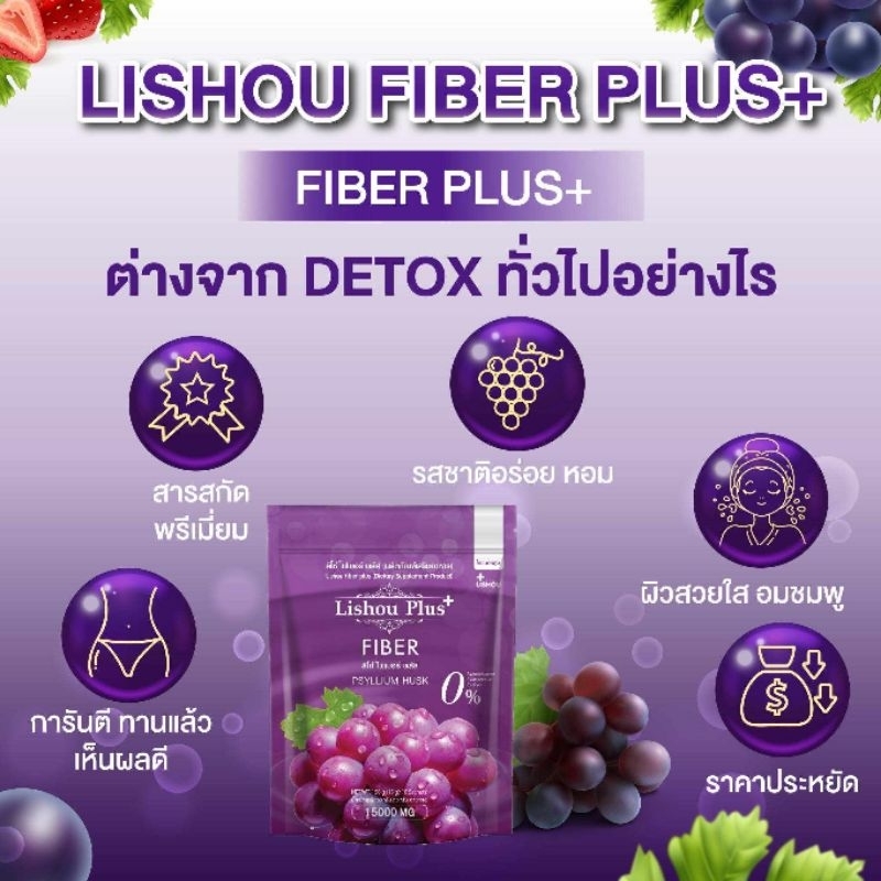 ♦️ของแท้♦️Lishou Fiber [ สูตรพลัส ] ลิโซ่ ไฟเบอร์ ดีท็อกซ์ 🍇 Lishou fiber [ น้ำชง ดีท็อกซ์องุ่น ] 10 ซอง