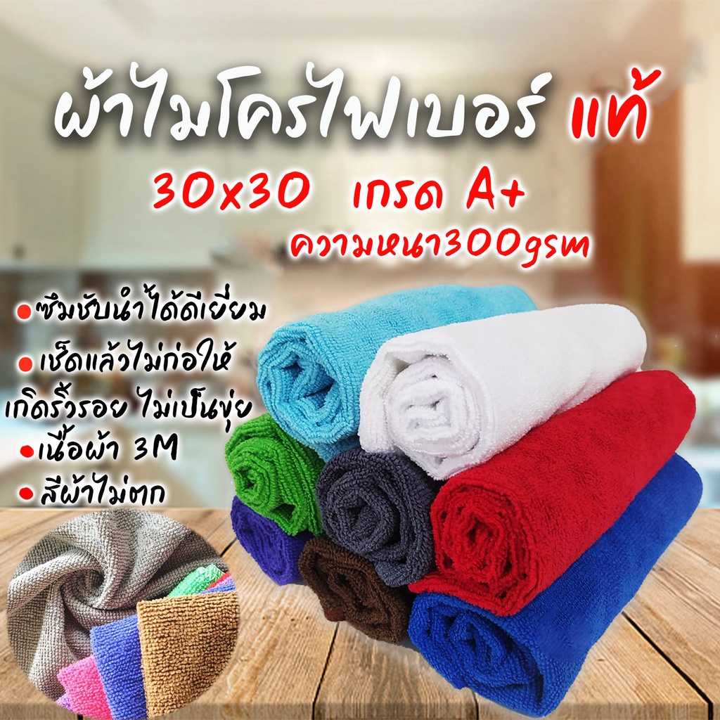 ... าประเภทอื่น ๆ ด้วยคุณสมบัติในการเก็บฝุ่นและดูดซับได้เป็นอย่างดี จึงเหมาะกับการใช้งานทำความสะอาดเป็นอย่างยิ่ง โดยเฉพาะการนำมาเช็ดทำความสะอาดรถยนต์ เพราะมีการพิสูจน์มาแล้วว่าสามารถกำจัดฝุ่นผงได้ถึง 98 เปอร์เซ็นต์ พร้อมลดแบคทีเรียได้มากกว่า 99.99 เปอร์เซ็นต์เลยทีเดียว สินค้า - ผ้าไมโครไฟเบอร์ - หนา 300 Gsm - ขนาด 30 x 30 cm คุณสมบัติ ผ้าไมโครไฟเบอร์ - เช็ดได้ทั้งเปียกและแห้งโดยไม่เกิดริ้วรอย - เช็ดได้สะอาด รวดเร็ว ประหยัดแรง - Polyester 80% มีไฟฟ้าสถิตย์ ซึ่งมีคุณสมบัติในการดัก จับ และกักเก็บฝุ่นได้ดี - Polyamide 20% มีคุณสมบัติในการดูดซับสูง ซึ่งเมื่อใช้กับน้ำหรือน้ำที่ผสมน้ำยาทำความสะอาด จะช่วยให้การขจัดคราบสกปรก ตลอดจนคราบไขมันต่างๆรวมทั้งแบคทีเรียบนพื้นผิวเป็นไปอย่างมีประสิทธิภาพ โดยปราศจากคราบน้ำและรอยขีดข่วน การใช้งาน ผ้าไมโครไฟเบอร์ - ทำความสะอาดรถ รถยนต์ รถมอเตอร์ไซค์ รถจักรยาน - ใช้ลงแว็กซ์เคลือบสีรถ ลงน้ำยา ฯลฯ - ใช้เช็ดทำความสะอาด เฟอร์นิเจอร์ ห้องครัว ห้องน้ำ ภาชนะใส่อาหาร - ใช้เช็ดทำความสะอาด อุปกรณ์อิเล็กทรอนิกส์ แว่นตา แก้วน้ำ ฯลฯ - ใช้เช็ดทำความสะอาดทั่วไป อเนกประสงค์
