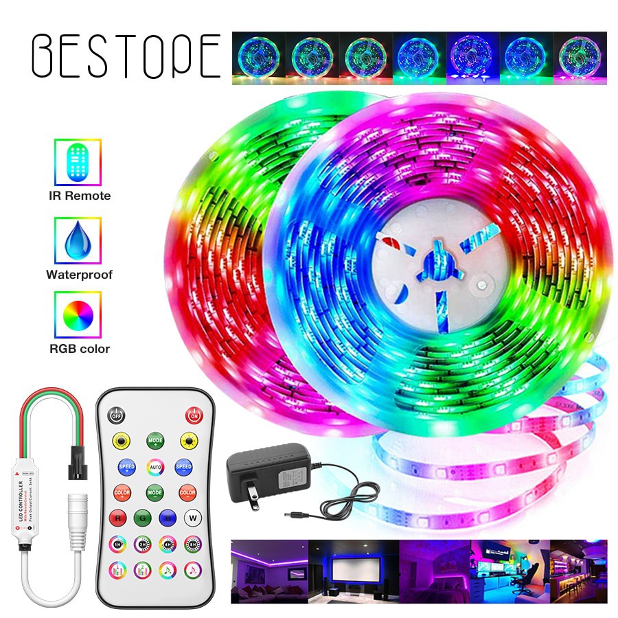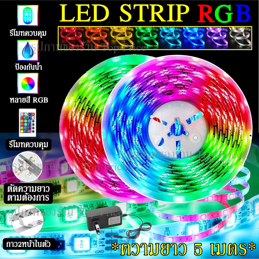 [ลูกค้าใหม่ 1 บาท] พร้อมส่ง!! ไฟเส้น LED STRIP RGB 5เมตร ควบคุมด้วยรีโมต ไฟกระพริบปรับสี ปรับโหมด 5050 2835 สำหรับตกแต่ง