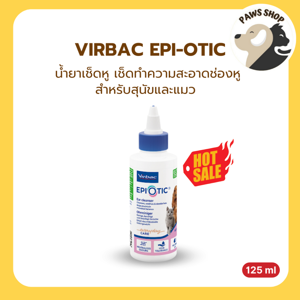 - น้ำยาทำความสะอาดช่องหู อีพิ-โอติก - อีพิ-โอติก เป็นน้ำยาเช็ดทำความสะอาดหูสุนัขและแมว - มีคุณสมบัติเป็นยาฆ่าเชื้อสำหรับใช้เช็ดทำความสะอาดหูที่เปียกชื้นมีขี้หูมากและมีกลิ่น - ช่วยให้การทำความสะอาดช่องหูเป็นเรื่องง่ายและไม่ระคายเคืองเพราะไม่ต้องใช้ก้านสำลีในการทำความสะอาด - ไม่ทำให้เกิดการระคายเค