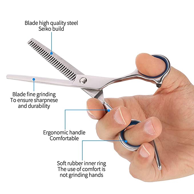 ... แข็งแรงทนทาน - รูปทรงออกแบบมาพิเศษ สบายมือ จับง่าย ตัดสบาย ใช้ได้นาน **วิธีการจับกรรไกรตัดผมที่ถูกต้อง** 1. การจับกรรไกรที่ถูกต้องให้สอดนิ้วนางลงในช่องของขากรรไกรจนถึงข้อนิ้วที่ 2 2. การจับกรรไกรนิ้วอยู่ด้านบนให้ 3 นิ้ววางไว้ด้านบนโดยเฉพาะนิ้วชี้จับอยู่ตรงข้อที่ 2 ให้แข็งแรง 3. การจับกรรไกรเพื่อความเคลื่อนไหวที่สะดวกให้นิ้วหัวแม่มือสอดแค่ปลายนิ้วเท่านั้น 4. การจับกรรไกรและหวีอย่างถูกต้องซึ่งจะช่วยให้การซอยผมทำได้รวดเร็วยิ่งขึ้น **วิธีการตัดผม และ ซอยผมแบบมาตรฐาน** - การซอยผมแบบมาตรฐานที่นิยมคือการซอยซิกแซก เป็นเทคนิคที่ทำให้ผมดูนุ่มนวลไม่ต้องใช้มีดโกนซอยอีก ซึ่งทำให้เกิดผลดี และ ผมดูเบาบาง เส้นผมจะพลิ้วเป็นธรรมชาติ การซอยผมซิกแซกทำให้ผมดูหนา หรือ บางอย่างไรก็ได้หากซิกแซ็ก ลึกผมหนาก็จะทำให้ดูบาง หากซิกแซกตื้นผมบาง ก็จะทำให้ผมดูหนา - การซอยผมซิกแซก เป็นวิธีที่ทำให้ผมบางโดยดูภายนอกว่าความยาวเท่าเดิมไม่สั้นลงและทำให้ผมพริ้วสลวยสีและจัดรูปทรงได้ง่าย #กรรไกรตัดผม ชาย หญิง #อย่างดี #สำหรับ #ตัดผมเอง #ตัดผมมืออาชีพ กรรไกรสับผม #กรรไกรตัดผมซอยผม #กรรไกร #Barber Scissors Solingen #มาตรฐาน #เยอรมัน