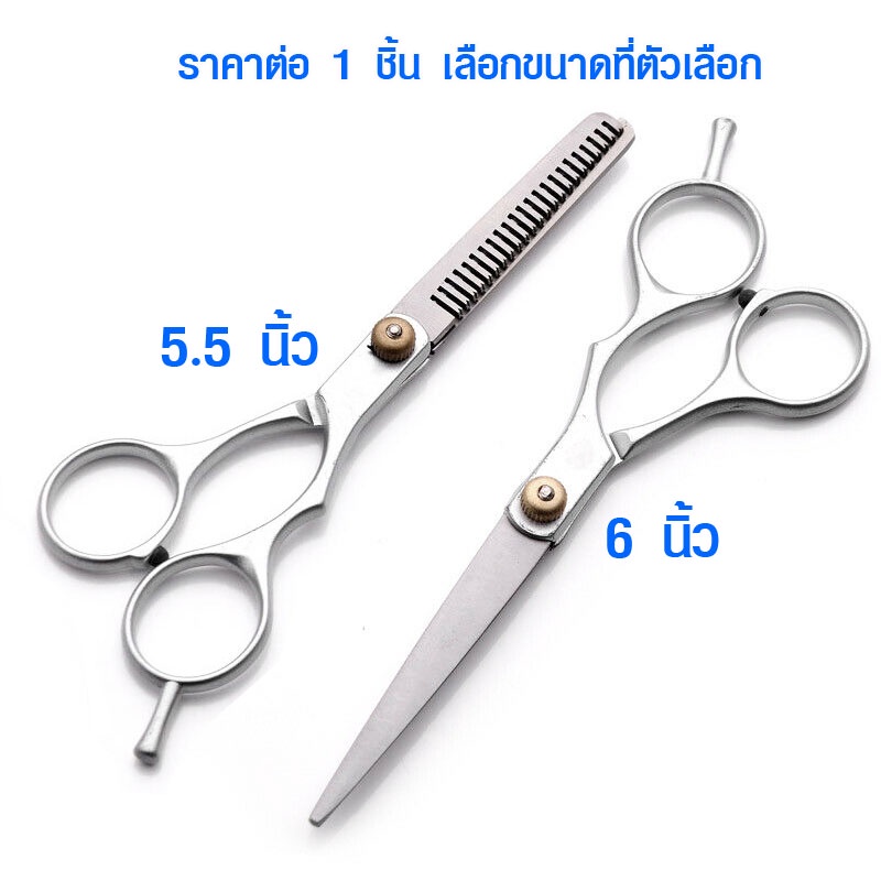 กรรไกรสแตนเลส สําหรับตัดผม กรรไกรตัดผม กรรไกรซอยผม อย่างดี กรรไกรสับผม กรรไกร Barber Scissors (เลือกแบบที่ตัวเลือก) ** ราคาต่อ 1 ชิ้น เลือกขนาด แบบ ที่ตัวเลือก ** 5.5 นิ้ว กรรไกรซอย 6 นิ้ว กรรไกรตัดผม **รายละเอียดสินค้า** - คมมาก อายุการใช้งานยาวนาน - สแตนเลสแท้ 100% - กรรไกรรูปแบบเยอรมัน