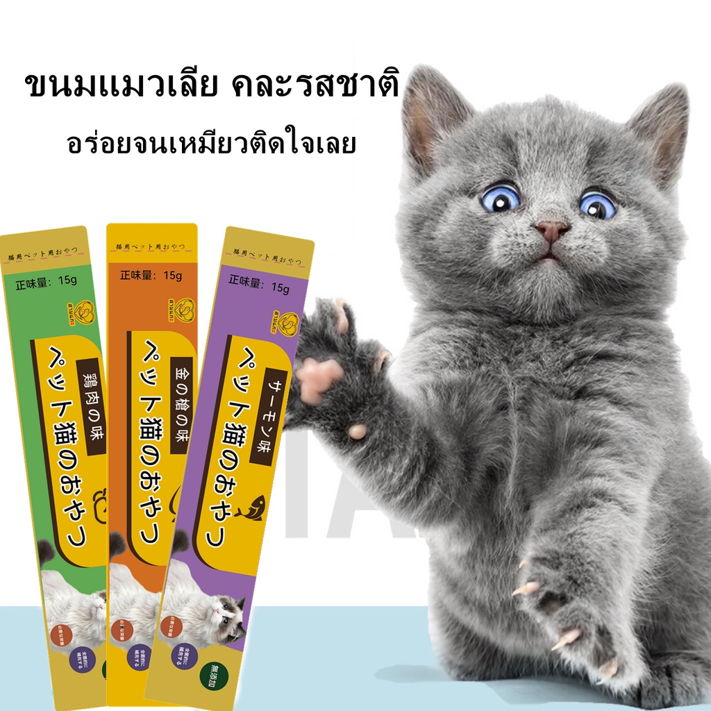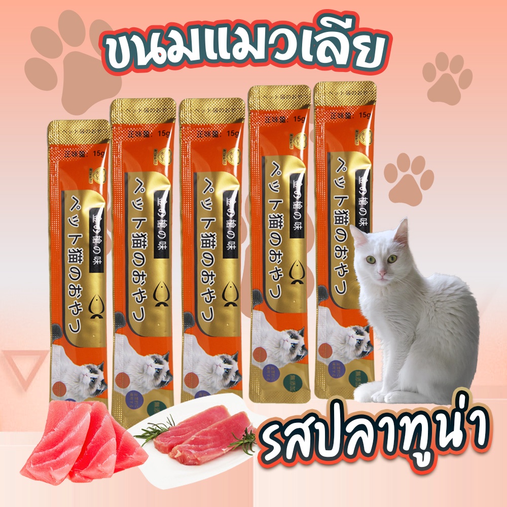 พร้อมส่ง​ ขนมแมวเลีย​ คละรสชาติ อร่อยจนเหมียวติดใจเลย ปลาทูน่า ปลาแซลมอน อกไก่ จากต่างประเทศ 15g