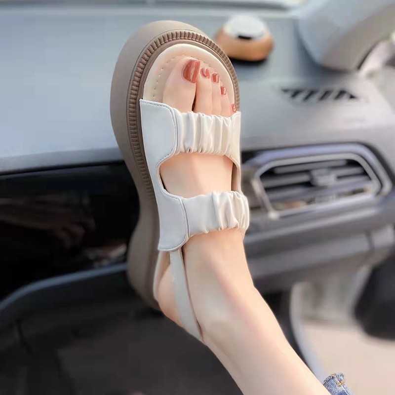 รองเท้าแตะแพลตฟอร์ม พื้นหนา เหมาะกับใส่กลางแจ้ง แฟชั่นสําหรับผู้หญิง
