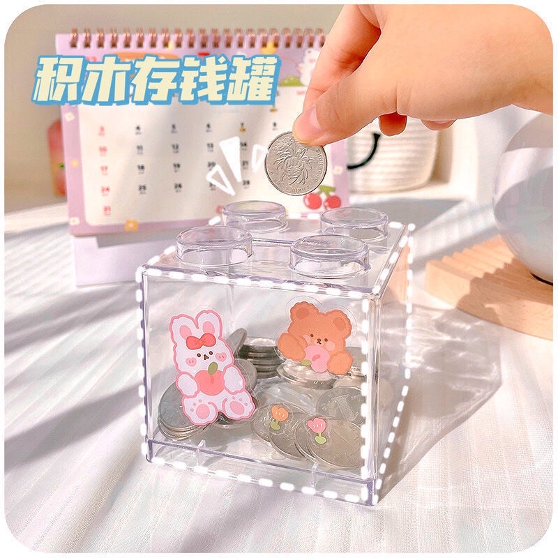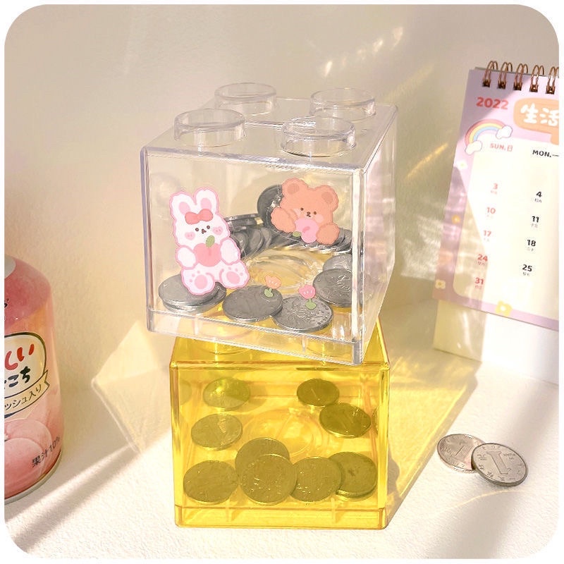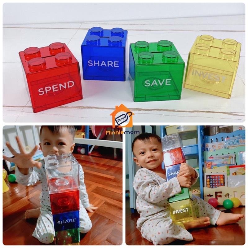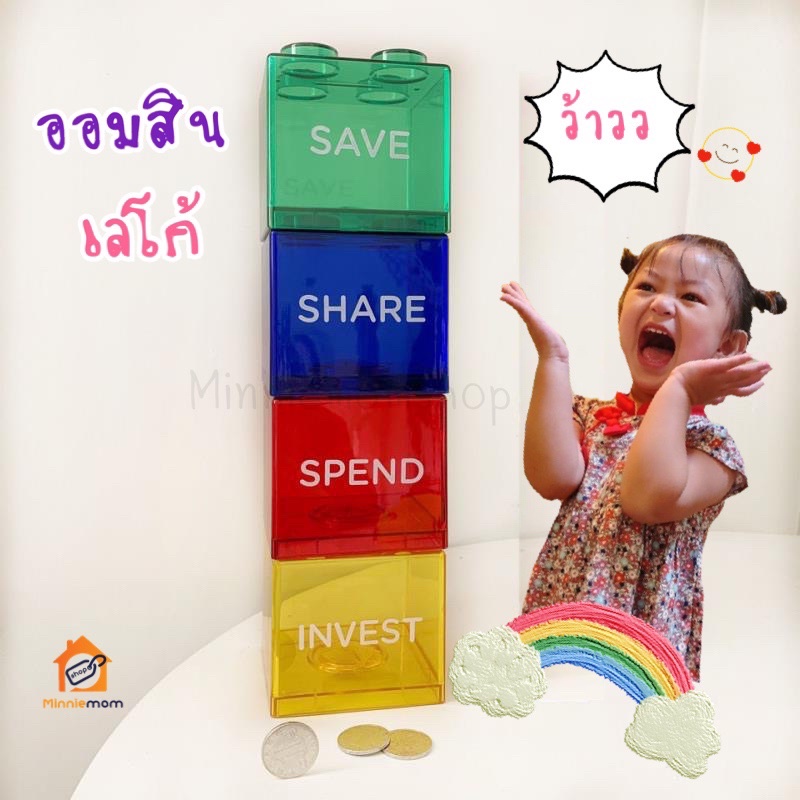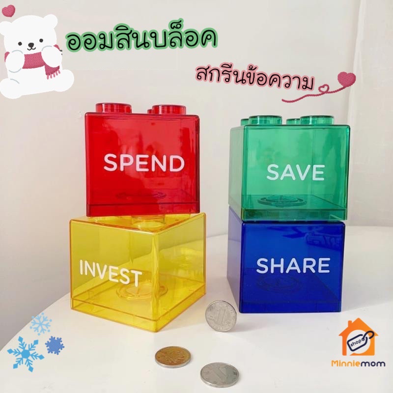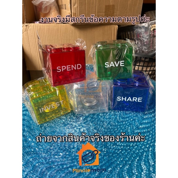 ร้านไทย ออกใบกำกับได้🌈ออมสินบล็อคตัวต่อสกรีนข้อความ Block Saving หยอดเหรียญ หยอดแบงก์ ต่อกันได้ ตกแต่งบ้าน เลโก้ แจกเด็ก