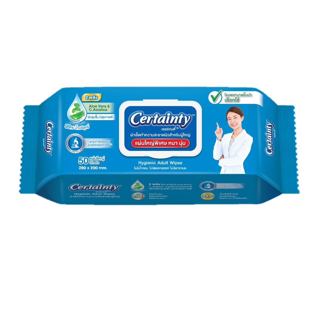 [ขายยกลัง]Certainty Wipes เซอร์เทนตี้ไวพ์ ผ้าเช็ดทำความสะอาดผิวสำหรับผู้ใหญ่ (50 แผ่น x 12 แพ็ค)