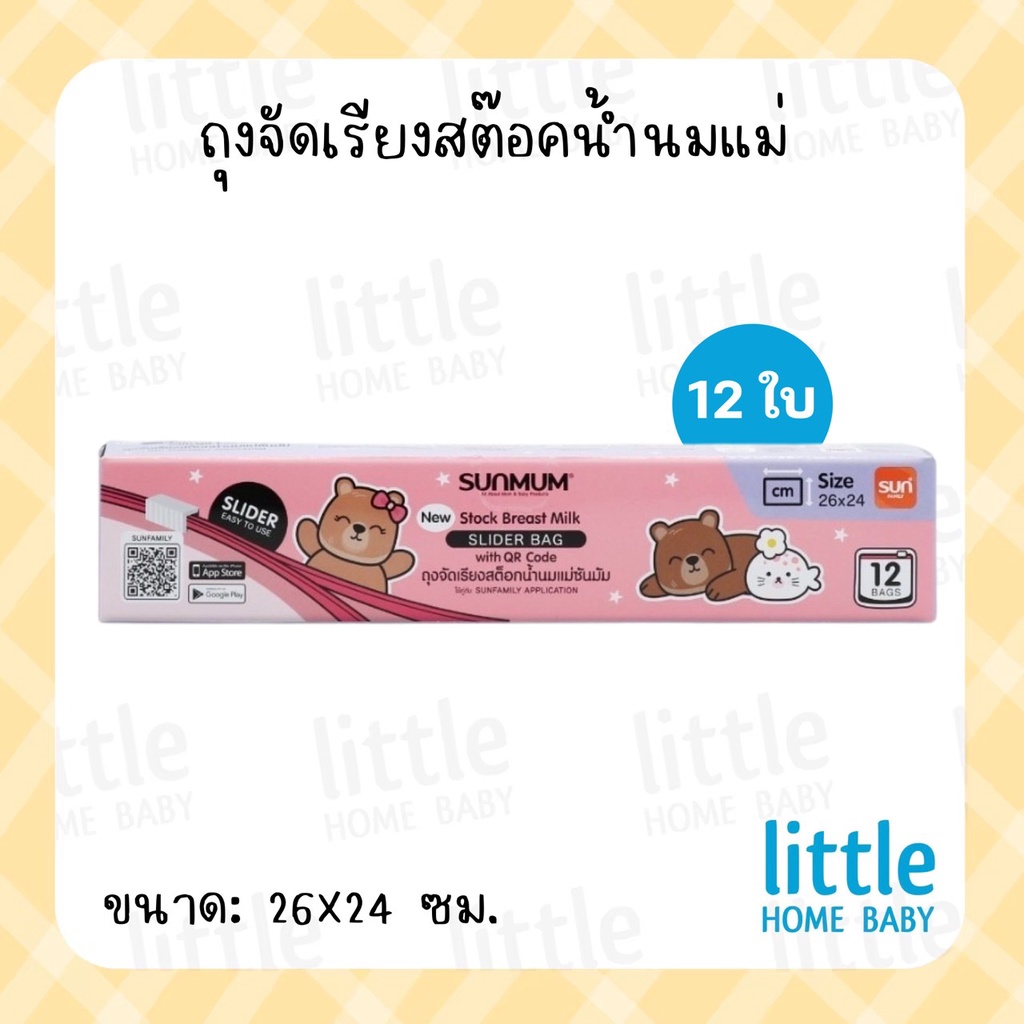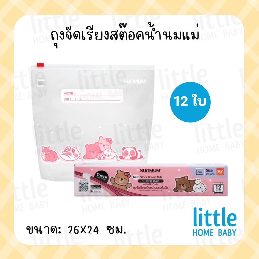ถุงสต๊อคน้ำนมแม่ แบบสไลด์เดอร์ ซันมัม สีชมพู 1 กล่อง 12 ใบ ถุงจัดเรียงสต๊อกน้ำนมแม่รุ่นใหม่ SUNMUM