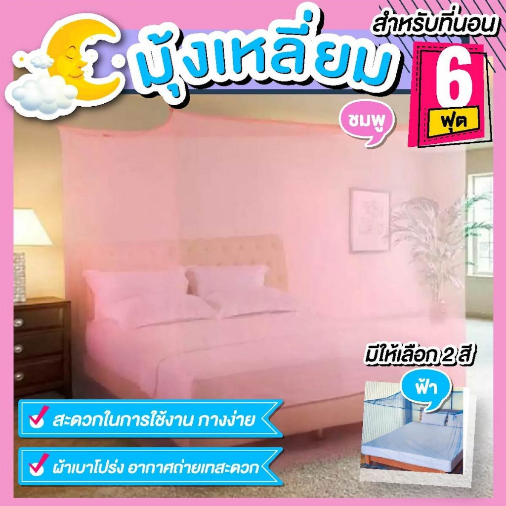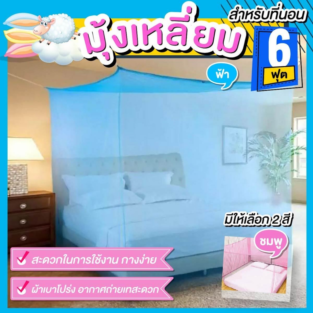 ... างต่อเนื่อง และปลอดภัยจากไข้เลือดออก พับเก็บง่าย ตัวมุ้งสามารถซักล้างแห้งเร็ว 2.ผลิตจากวัสดุ :ผ้าโพลีเอสเตอร์ 3215x225-230x150-155 cm. ขนาด 6 ฟุต . : ใช้สำหรับที่นอนหรือเตียง ขนาด 6 ฟุต ขนาดสินค้า : 210-215x225-230x150-155 cm. ขนาด 6 ฟุต