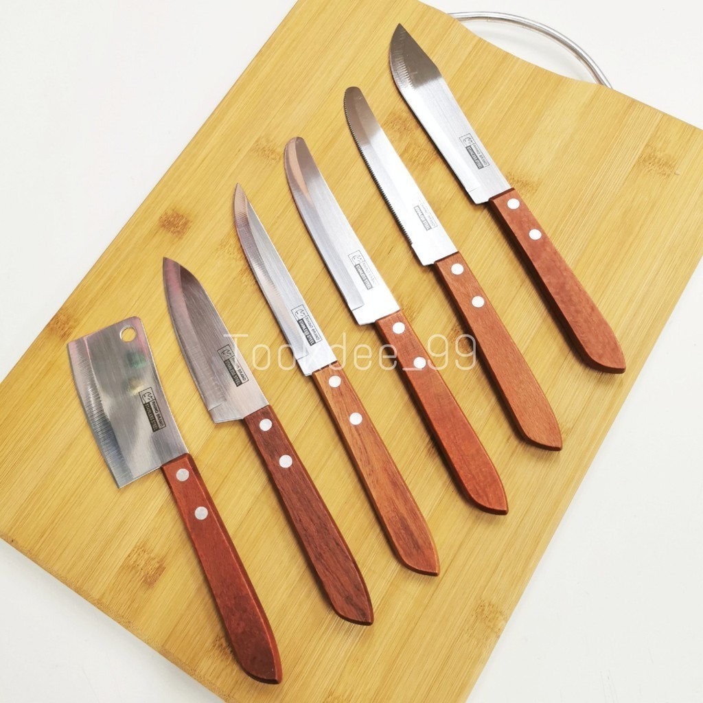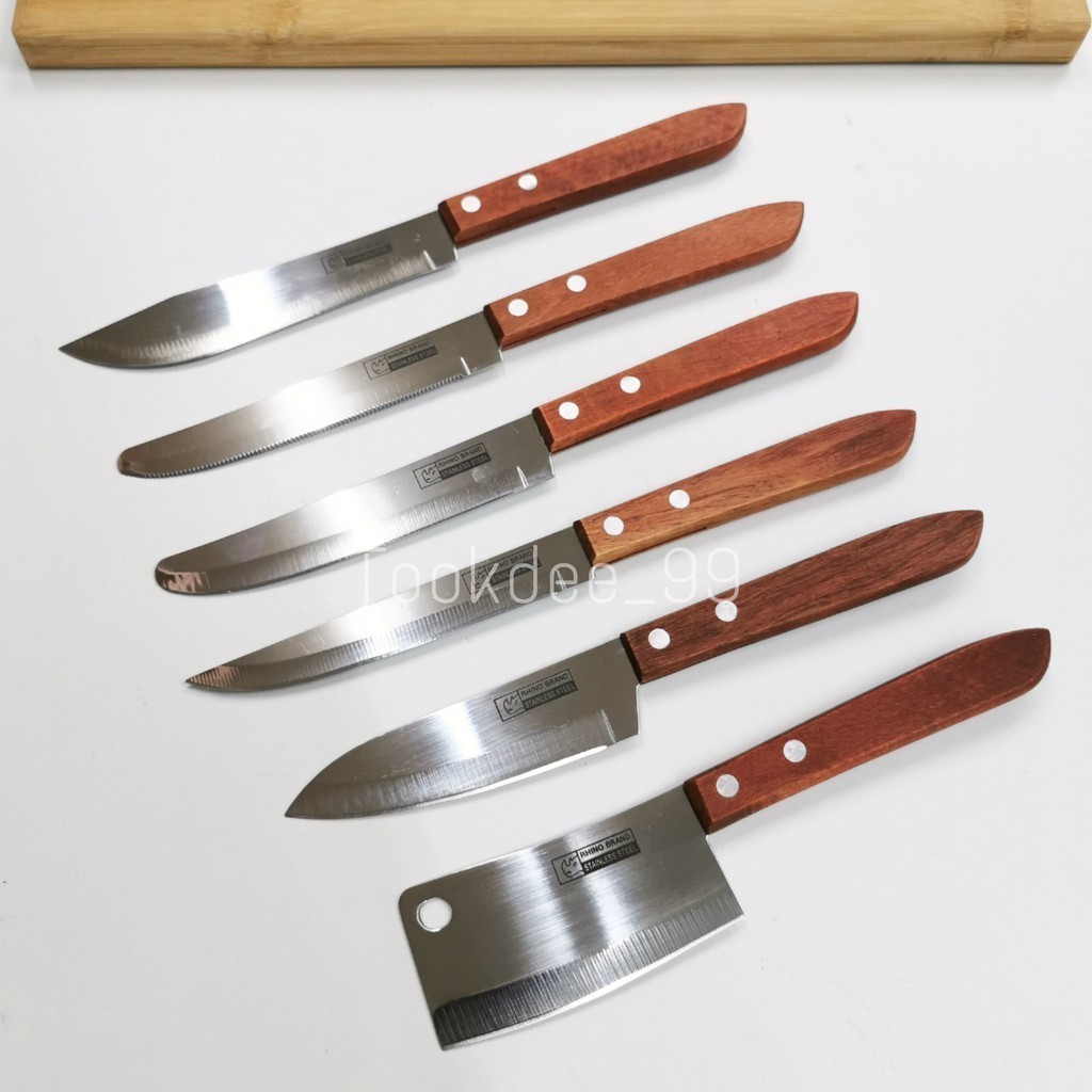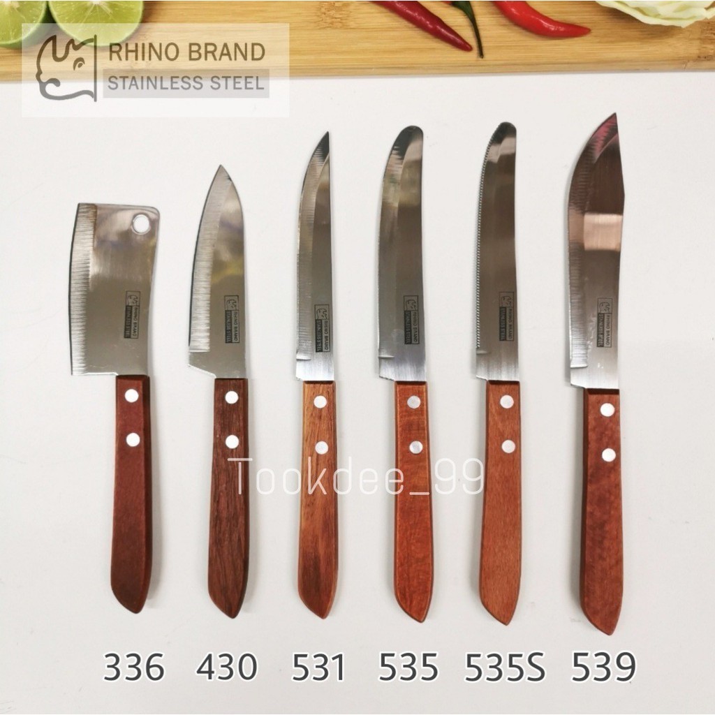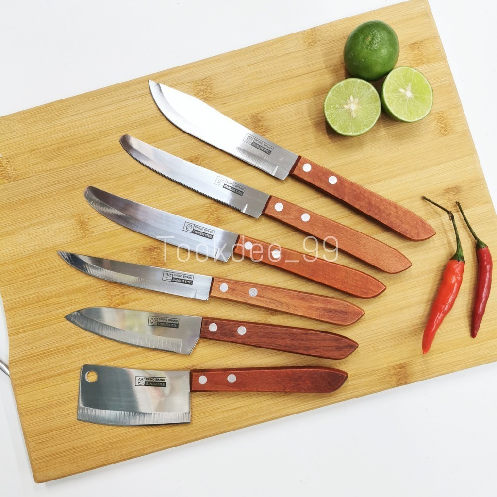 RHINO มีด มีดสแตนเลส มีดทำครัว หั่น สับ ปอก (ด้ามไม้น้ำตาลแดง) มีดทำอาหาร
