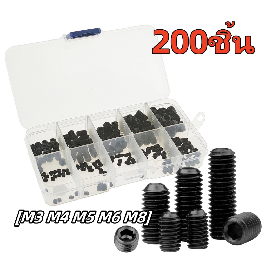 200 ตัว ชุดสกรูตัวหนอน 6 เหลี่ยมหัวจม ส่งจากไทยไม่ต้องกลัวกล่องแตก