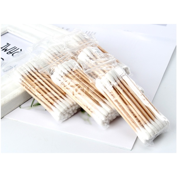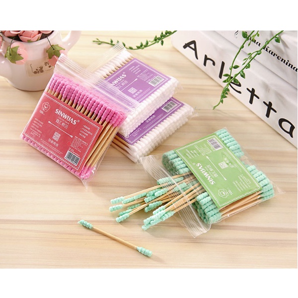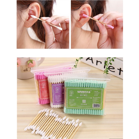 คอตตอนบัด 100 ก้าน (แพ็คเดี่ยว) Cotton buds สำลีปั่นหูด้ามไม้ สำลีไม้ สำลีก้าน สำลีเช็ดเครื่องสำอาง