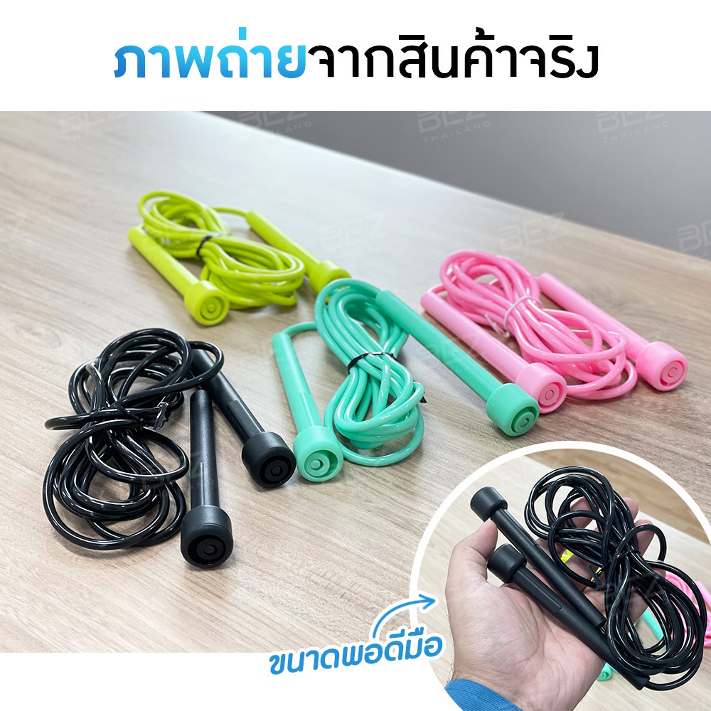 ... างร้านเป็นของแท้ 100% ....................................................................................................................................................................................... เชือกกระโดด ที่กระโดดเชือก ตัวเชือกทำจากวัสดุ PVC หนา แข็งแรง ทนทาน ไม่หัก ไม่งอ ไม่พันกัน ยืดหยุ่นได้ดี ปรับความยาวได้ ใช้งานได้นาน ด้ามจับออกแบบมาให้จับถนัดมือ นุ่มมือ ไม่ลื่น ซับเหงื่อ ไม่ปวดข้อมือขณะออกกำลังกาย ใช้ได้ทั้งชายและหญิง ใช้งานได้ทุกที่ทุกเวลา พกพาสะดวกน้ำหนักเบา คุณสมบัติ • เชือกกระโดด – ตัวเชือกทำจากวัสดุ PVC หนา แข็งแรง ทนทาน ไม่หัก ไม่งอ ไม่พันกัน ยืดหยุ่นได้ดี ใช้งานได้นาน • ด้ามจับ PVC ผิวด้าน ออกแบบมาให้จับถนัดมือ นุ่มมือ ไม่ลื่น ซับเหงื่อ ระบายอากาศดี ไม่อับชื้น • ปรับความยาวได้ เชือกกระโดดได้ให้เหมาะกับผู้เล่นได้ • น้ำหนักเบา สามารถพกพาติดตัว นำไปบริหารร่างกายได้ทุกที่ • บริหารกล้ามเนื้อสะโพก ต้นขา ก้น (บั้นท้าย สะโพกกระชับ ต้นขา) 🎉 ข้อมูลสินค้า [ ความยาวสูงสุด 2.75 เมตร ] 🎉 • ผลิตจากวัสดุ PVC แข็งแรง • ความยาวที่ปรับได้ 2.75 (รวมด้ามจับ) • ความยามด้ามจับ 12 เซนติเมตร • ความหนาเชือก 4 มิลลิเมตร • น้ำหนัก 70 กรัม • สีดำ, เขียว, มิ้นท์, ชมพู 🎉 ข้อมูลจำเพาะ [ ความยาวสูงสุด 3 เมตร ] 🎉 • ขนาดสินค้า สูง 12 ซม. • ความยาวที่ปรับได้ 3.0 เมตร (รวมด้ามจับ) • ความยามด้ามจับ 12 เซนติเมตร • ความหนาของเชือกประมาณ 4 มิลลิเมตร • น้ำหนัก 90 กรัม • สีดำ, สีแดง-ดำ
