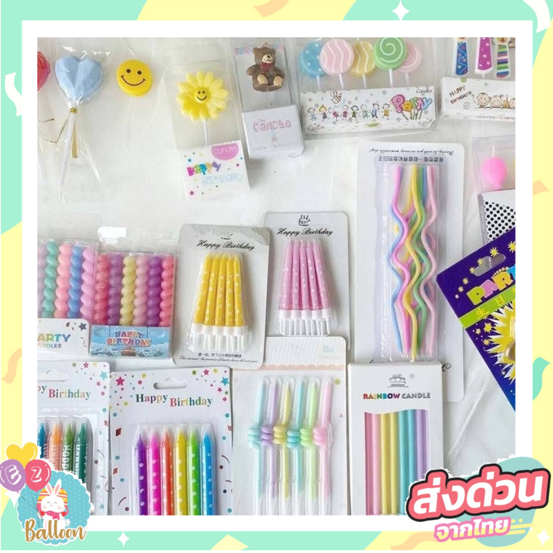 เทียน เทียนวันเกิดสีรุ้ง พาสเทลสดใส งานมาใหม่ สีน่ารักมาก ( CN20 )