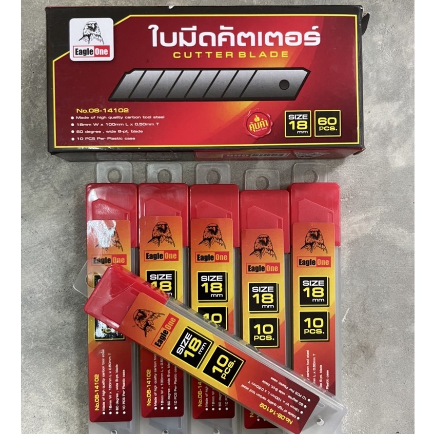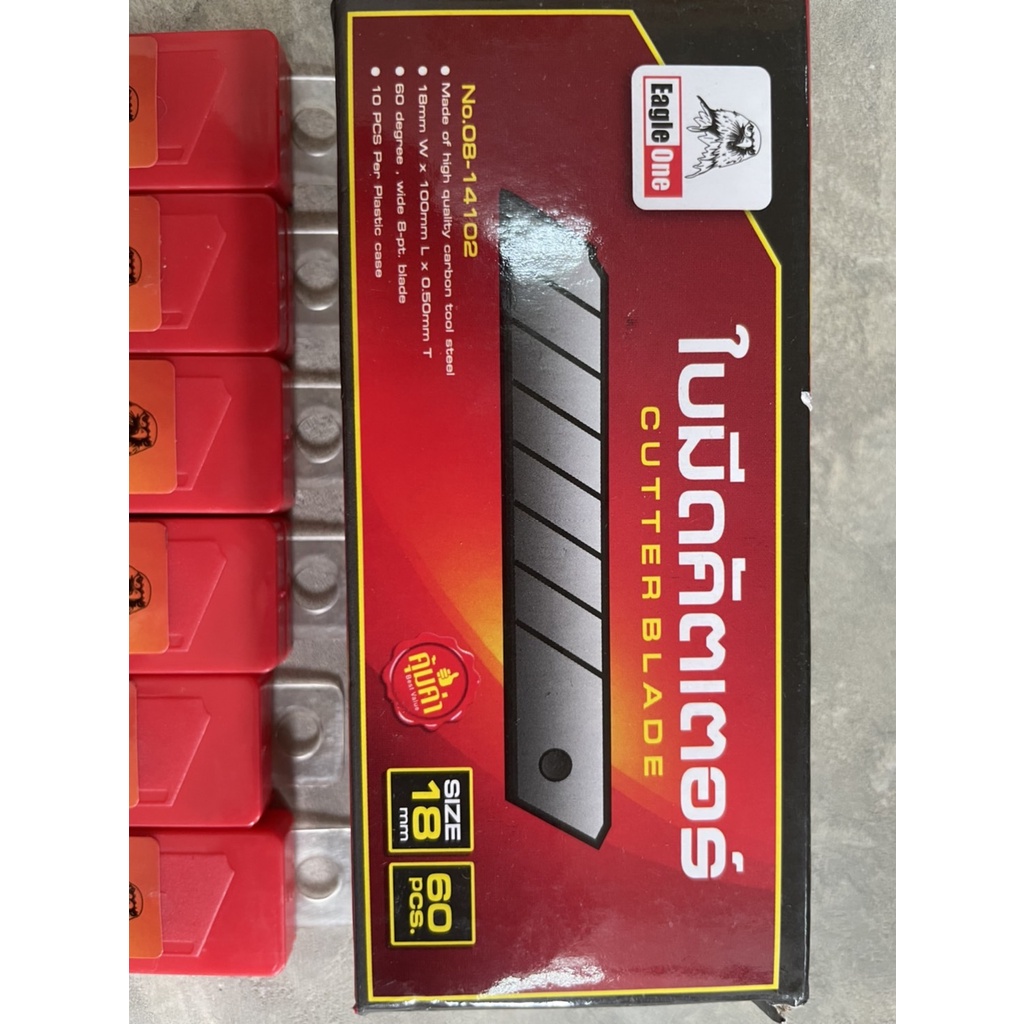 ยี่ห้อ Eagle one มีดคัตเตอร์ พลาสติก ขนาดใหญ่ มีระบบล็อคใบ ปลอดภัยในการใช้งาน - ขายยกแผงทีละ 6อัน มีดคัตเตอร์พลาสติก ขนาดใหญ่ ใช้กรีด ตัด สิ่งของทั่วไป วิธีคลายล็อค กดด้านข้างของตัวเลื่อนมีด - ใบมีดคัตเตอร์สำรอง กล่องละ 60 ใบ ขายยกกล่อง