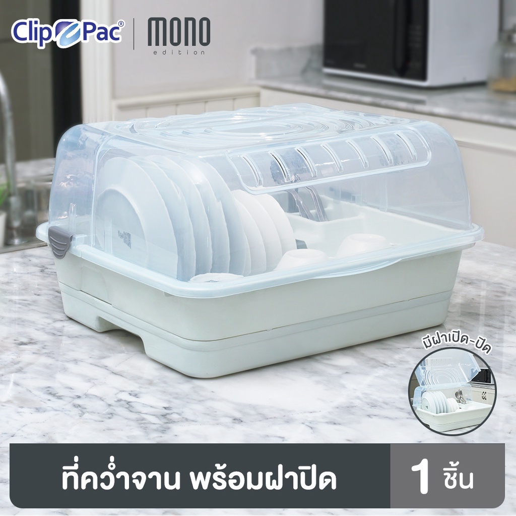 Clip Pac Mono ที่คว่ำจาน 1 ชั้น พร้อมถาดรองน้ำ ใส่จาน ชามและถ้วย ได้มากกว่า 15 ใบ พร้อมช่องใส่ช้อนส้อม