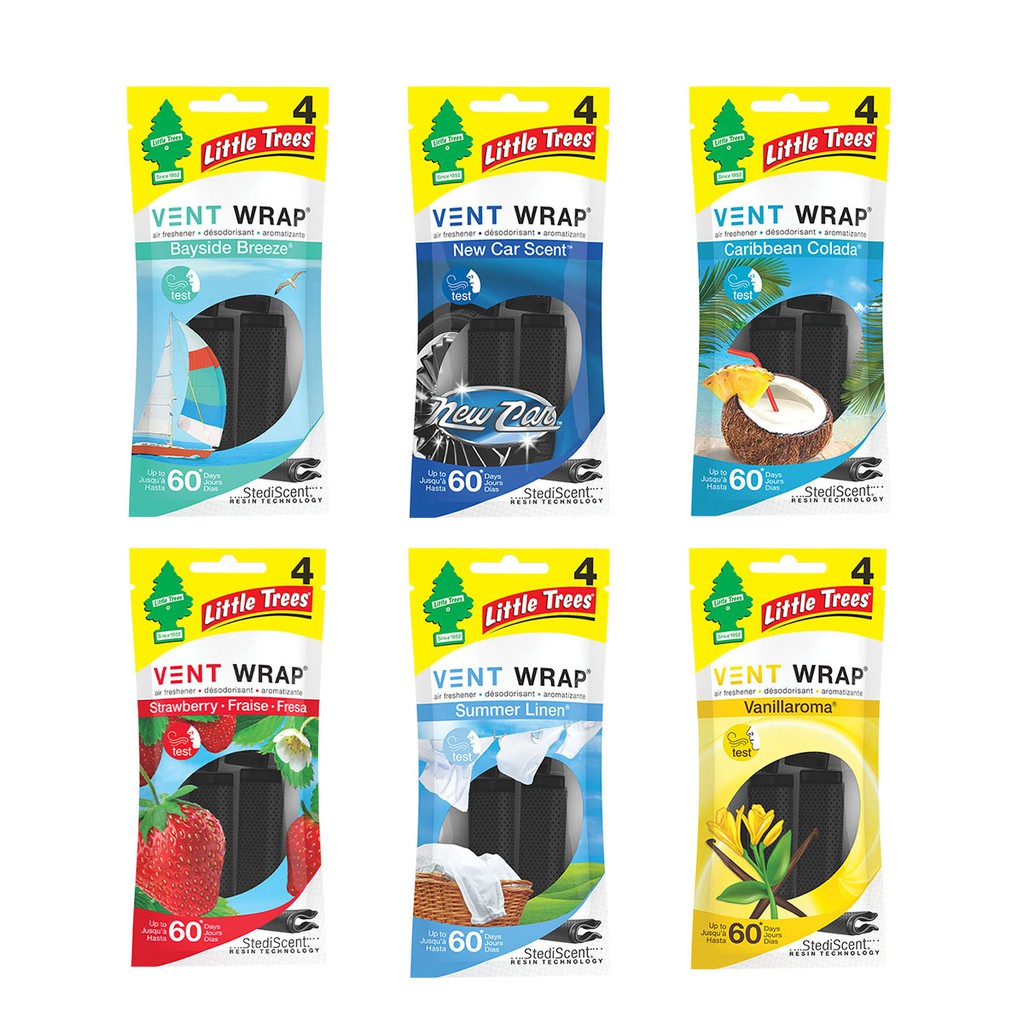 Little Trees VENT WRAP น้ำหอมปรับอากาศแบบเสียบช่องแอร์ในรถยนต์ มี 8 กลิ่น (ของแท้) (ใน 1 ซอง จะมี 4 ชิ้น) 1. กลิ่น Black Ice (กลิ่นขายดี) - A mysteriously enticing masculine blend of citrus and woods. ความหอมจากความวูดดี้ที่ดูดีมีชาติตระกูล ตัดด้วย Citrus เบาๆ มีความเป็นผู้ดี สุขุมนุ่มลึก ดูล