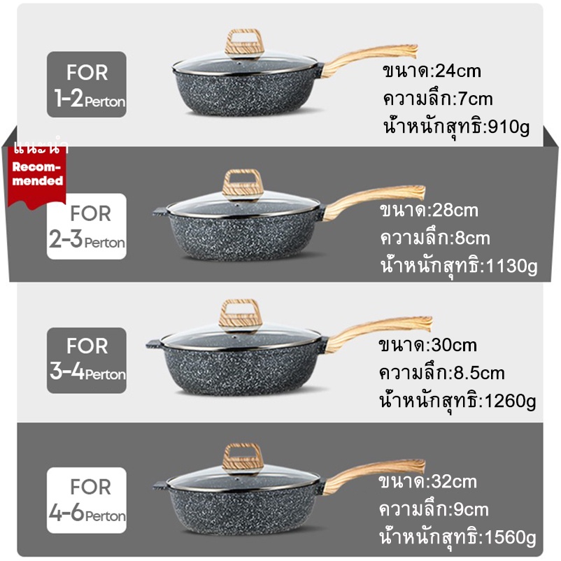 ... งปัน ความรัก" ซึ่งทำให้คุณสามารถเพลิดเพลินกับการทำอาหารที่ดีต่อสุขภาพและง่ายขึ้นเพื่อแบ่งปันกับคนที่คุณรักได้อย่างอิสระ 🌿 ไร้กังวลกับลูกค้าและบริการหลังการขาย ~~~~~~~~~~~~~~~~~~~~~~~~~~ 🍀รายละเอียดสินค้า: 🌱ประสิทธิภาพไม่ติดคุณภาพสูง 1. เคลือบ Non-Stick แบบหนา - เคลือบด้วยหินทางการแพทย์ขั้นสูง ควันน้อย น้ำมันน้อย ไม่เหนียวเหนอะหนะ 2. การทำอาหารแฟนซีตุ๋นแบบไร้ควัน เพลิดเพลินกับอาหารหลากหลาย 🌾 กระบวนการความปลอดภัยและสุขภาพ 1. ผลิตภัณฑ์คุณภาพสูงหลังจาก US Fda Test Sgs Certification, การรับรองความปลอดภัยด้านอาหาร, No Pfoa 2. หินของไม้ไม่เกาะ ผนังด้านในเรียบ แกะออก ทำความสะอาดง่าย 3. การหล่อแบบชิ้นเดียว: การใช้งานระยะยาว ไม่มีน้ำมันพุ่ง 4. เหมาะสำหรับทุกชนิดของเตา: เช่นเตาแก๊ส เตาแม่เหล็กไฟฟ้า เตาแม่เหล็กไฟฟ้า เตาฮาโลเจน เตาไฟฟ้า เตาเซรามิก ฯลฯ 🌷พารามิเตอร์ผลิตภัณฑ์: 1. ขนาดผลิตภัณฑ์: กระทะ 24 ซม. 2.6 ลิตร 1 ~ 2 คน น้ำหนักสุทธิ: 0.91 กก. ความลึกของหม้อ :7 ซม. กระทะ 28 ซม. 3.8 ลิตร 2 ~ 3 คน น้ำหนักสุทธิ: 1.13 กก. ความลึกของหม้อ :8 ซม. กระทะ 30 ซม. 4.9 ลิตร 4 ~ 5 คน น้ำหนักสุทธิ: 1.26 กก. ความลึกของหม้อ :8.5 ซม. กระทะ 32 ซม. 6.0 ลิตร 5 ~ 6 คน น้ำหนักสุทธิ: 1.56 กก. ความลึกของหม้อ :9 ซม. ~~~~~~~~~~~~~~~~~~~~~~~~ 🍗 ข้อควรระวัง: 1. ก่อนใช้หม้อใหม่ และอุ่นน้ำร้อนเพื่อทำความสะอาดและฆ่าเชื้อ และเช็ดให้แห้งหลังจากการทำให้แห้ง ค่อยๆ ทาน้ำมันอาหารเป็นชั้นเพื่อบำรุงรักษา แล้วจึงทำความสะอาดอีกครั้ง 2.. ห้ามใช้หม้อหุงลม (แบบแห้ง) เพื่อหลีกเลี่ยงความเสียหายต่อหม้อกันติดที่ส่งผลต่ออายุการใช้งาน 3. เมื่อปรุงอาหาร คุณควรใช้หม้อต้มไนลอน พลาสติก หรือไม้ที่ทนความร้อน เพื่อหลีกเลี่ยงไม่ให้มีดคมหรือภาชนะโลหะทำอันตรายต่อการเคลือบกระทะแบบไม่ติดกระทะ ~~~~~~~~~~~~~~~~~~~~ 🍡วิธีการซัก: 1.Ecowin หม้อยี่ห้อมีความเข้ากันไม่ได้, ทำความสะอาด, ใช้น้ำร้อน, ล้างด้วยฟองน้ำนุ่ม ๆ , ห้ามใช้ลวดเหล็กในการทำความสะอาดหม้อเพื่อหลีกเลี่ยงการขีดข่วนเคลือบสารกันติดหรือทำลายผิวเคลือบอย่างทั่วถึง 2. หลังจากทำความสะอาดแล้ว ให้ทาน้ำมันอาหารหนึ่งชั้นในกระทะกันติด ซึ่งสามารถยืดอายุการใช้งานของหม้อได้