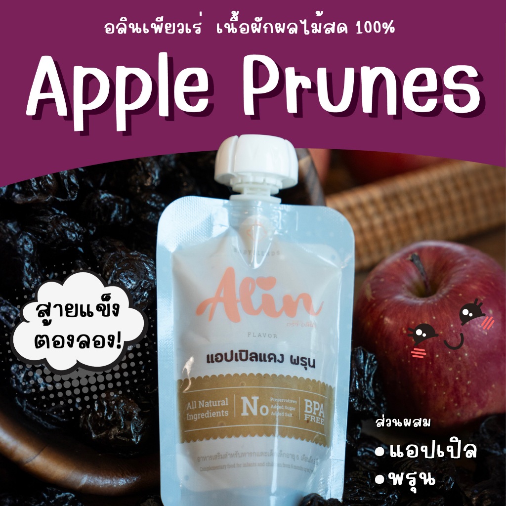 Alin เพียวเร่ : “แอปเปิล พรุน“ เนื้อผลไม้สดๆ ทำจากผลไม้แท้ บดละเอียดพร้อมทาน เหมาะกับทุกเพศทุกวัย