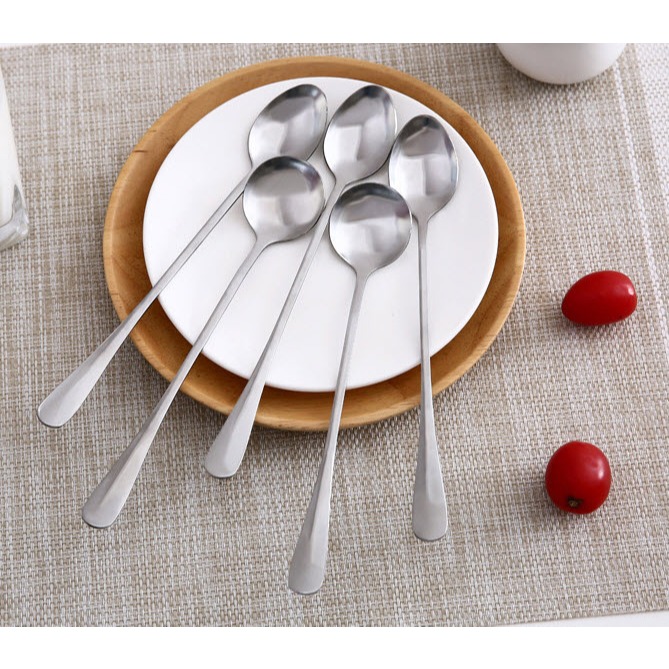 ช้อน สแตนเลส ด้ามยาว S0344 สีเงิน 19ซม. คุณภาพดี หัวกลม หัวรี ช้อนเกาหลี