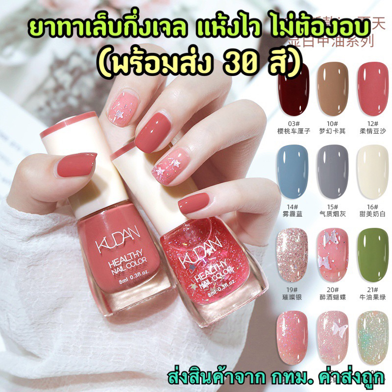 น้ำยาทางเล็บกึ่งเจล สูตรแห้งไว ไม่ต้องอบ สีชัด ติดทนมาก พร้อมส่ง30 สี สีพิเศษติดทนนาน ล้างออกง่ายด้วยน้ำยาล้างเล็บปกติ