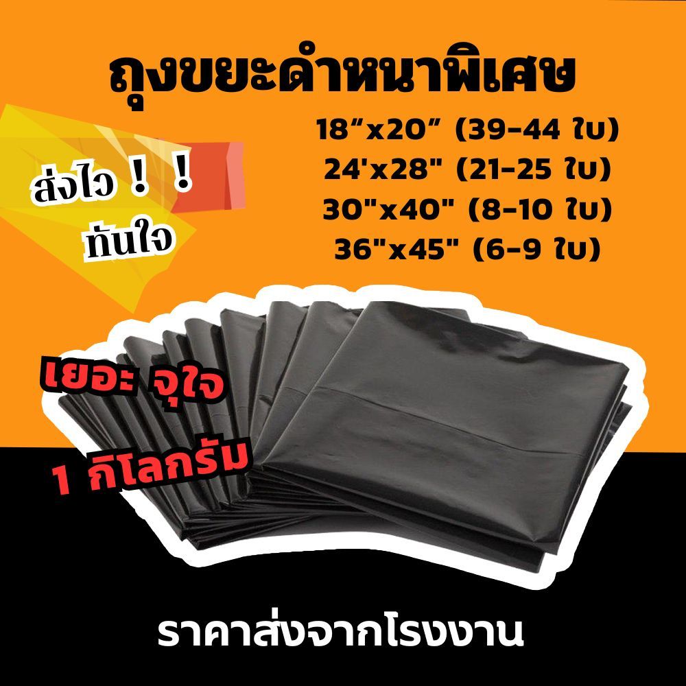 ... ้ง และขยะทั่วไป 4.มีความเหนียว ทนทาน เป็นอย่างดี 5.เหมาะกับการใช้งาน ในบ้าน ออฟฟิต โรงอาหาร โรงแรม โรงงานอุตสาหกรรม รับน้ำหนักได้ดี ***โรงงานกำหนดมาเป็น 1 KG/แพค ไม่ได้กำหนดเป็นจำนวนใบ ขึ้นอยู่กับการผลิตของแต่ละล็อด ขอลูกค้าที่เข้าใจ ไม่เอาจำนวนใบมาแจ้งว่าสินค้าไม่ตรงกลับข้อมูลด้านบนนะคะ เราใช้ชั่งน้ำหนักเป็นหลัก*** *** #ถุงขยะ #ถุงดำ #ถูกดำราคาถูก #1กิโลกรัม #1กิโล #ถูกกว่าโรงงาน #ถูกที่สุด #ถุงขยะ1kg#ถุงดำย่างหนา#หนาก่าหน้าลุงตู้