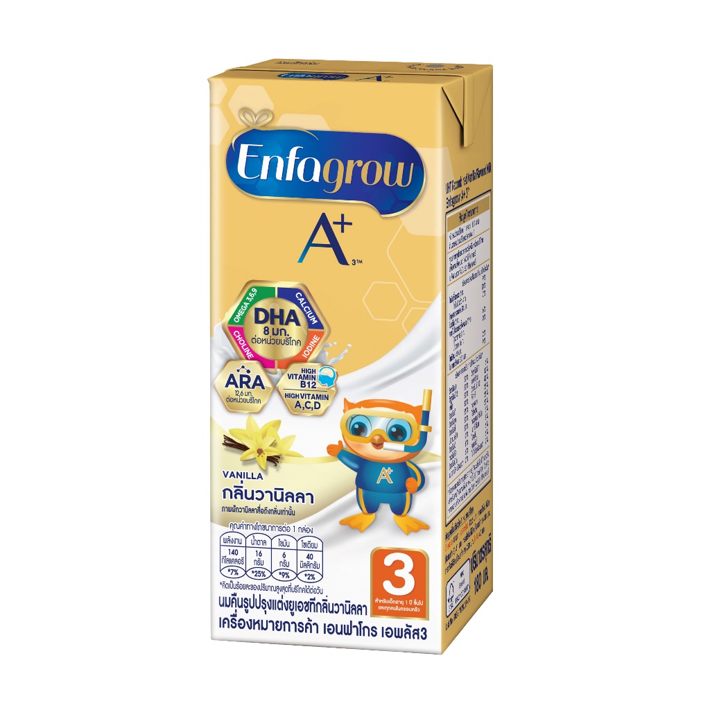 นมกล่อง เอนฟาโกร ยูเอชที สูตร3 กลิ่นวานิลลา (36 กล่อง) x2 ลัง Enfagrow UHT Stage3 Vanilla (36 boxes) x2 cases • มี DHA 8 มก. ARA 12.6 มก. ต่อ 1 หน่วยบริโภค • มีกรดไลโนลีนิก (โอเมก้า 3) 41 มก. , กรดไลโนลีอิก (โอเมก้า 6) 58 มก. และ กรดโอลีอิก (โอเมก้า 9) 950 มก. ต่อ 1 หน่วยบริโภค • มีโคลีน 40 ม