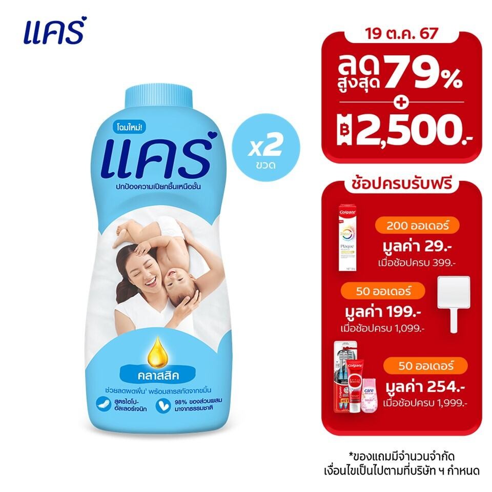 [มี 6 สูตรให้เลือก] แคร์ แป้งเด็ก แพ็คคู่ รวม 2 ขวด ช่วยลดผดผื่น อ่อนโยน ไม่ระคายเคือง (แป้งเด็ก, แป้งฝุ่น, แป้ง) Care Talcum Twin Pack Total 2 pcs. [5 Formulas] Does not cause allergies or irritations (Baby Talcum Powder) - แป้งแคร์ สูตร ไฮโป-อัลเลอร์เจนิก - มีให้เลือก 6 สูตร - ผ่านการทดสอบไ