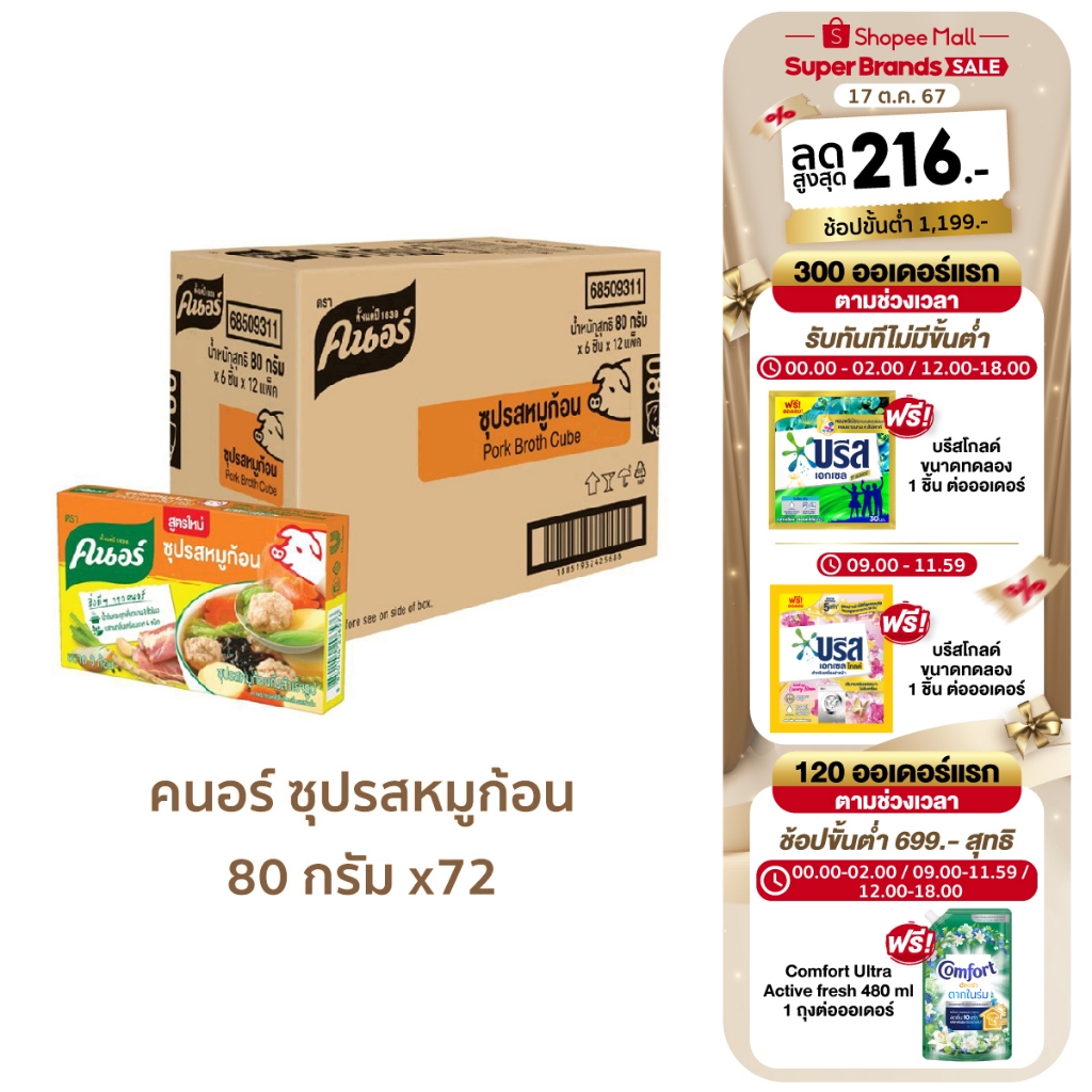 [ยกลัง] Knorr Cube Soup 80 g.x 72 คนอร์ ซุปก้อน 80 กรัม 1 ลัง 72 กล่อง