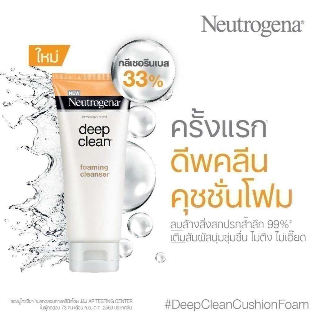 Neutrogena นูโทรจีนา ดีพ คลีน คุชชั่นโฟม 100 กรัม x 2 นวัตกรรมคุชชั่นโฟม ที่ให้ฟองโฟมเนื้อแน่นละเอียด และสัมผัสเนียนนุ่มยิ่งขึ้น ไม่ทำร้ายปราการผิว ไม่ทำให้หน้าแห้งตึง ผสานพลัง Deep Clean Technology ลบสิ่งสกปรกล้ำลึก 99% พร้อมเติมความชุ่มชื่นให้ผิวด้วยคุณค่าจาก กลีเซอรีน และขี้ผึ้ง เพื่อผิวสะอาดห