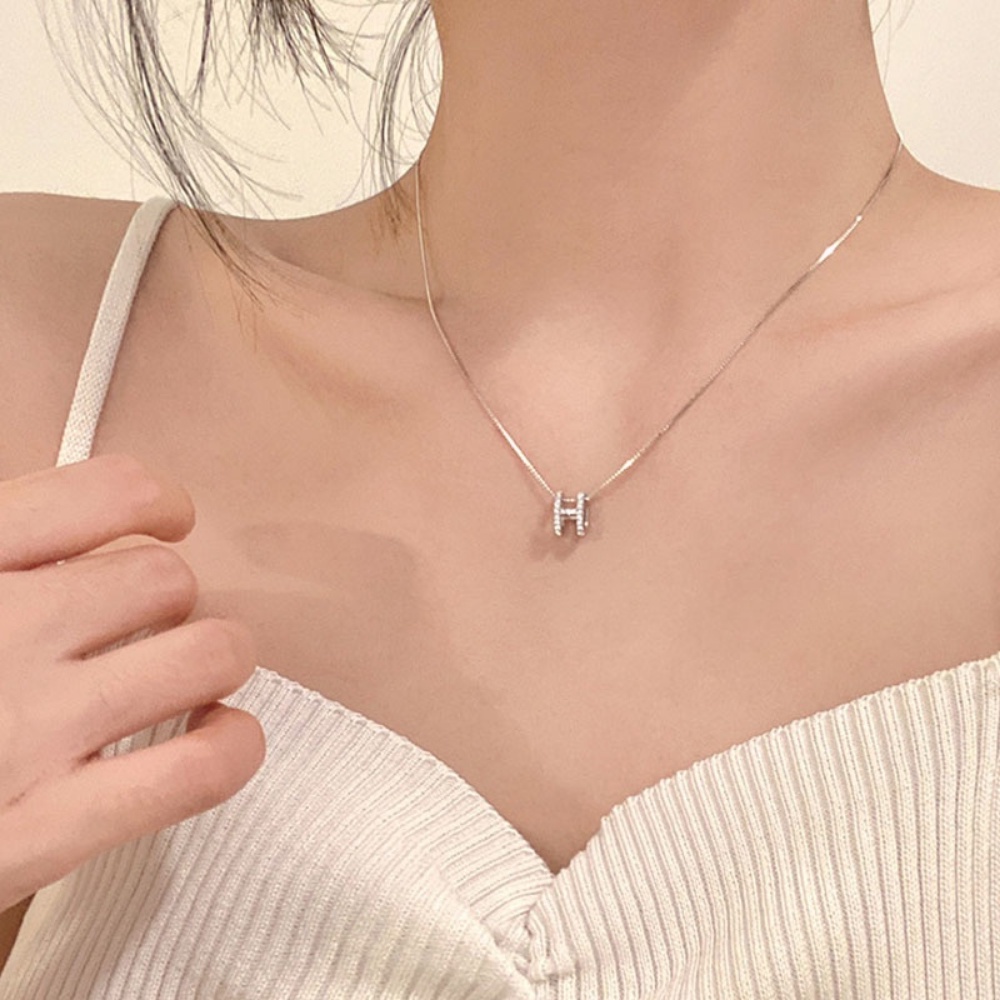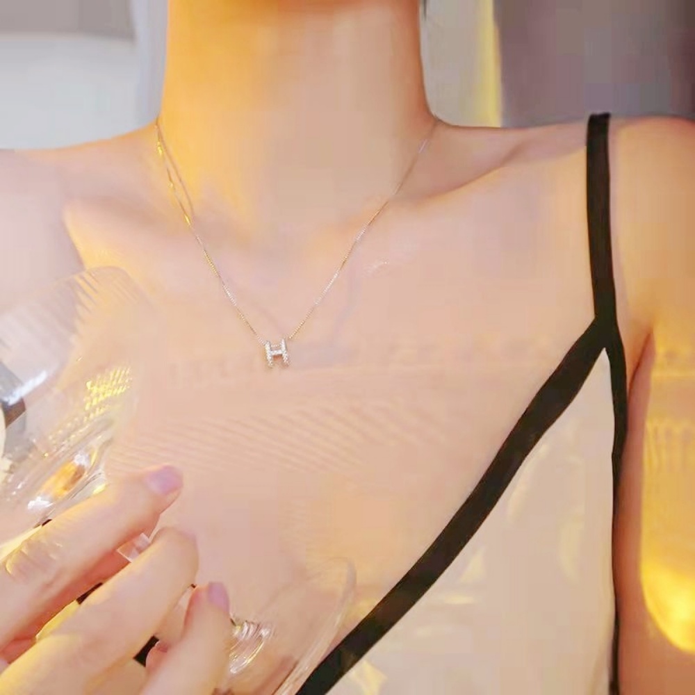 A HELLO GIRL เครื่องประดับ สร้อยคอ สายโซ่ จี้รูปตัวอักษร H ประดับเพชร หรูหรา แฟชั่นฤดูร้อน สําหรับผู้หญิง