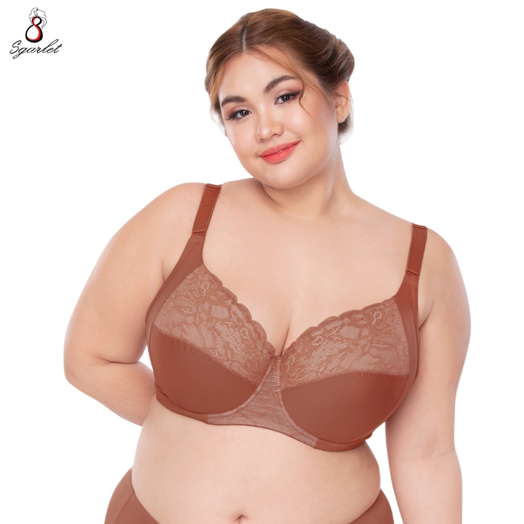Sgarlet เสื้อในไซส์ใหญ่มีโครงเก็บทรงกระชับ ฟองน้ำบาง ผ้าลูกไม้ สีชาเย็น/เนื้อ MB1734