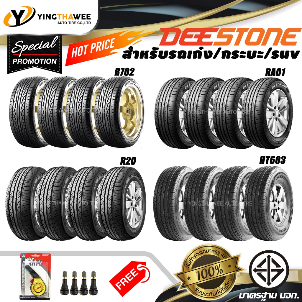 DEESTONE ยางรถยนต์ "รถเก๋ง/กระบะ/suv" ขอบ13-20นิ้ว จำนวนชุด 4 เส้น แถมเกจวัดลมเหลือง 1 ตัว + จุ๊บลมยางแท้ 4 ตัว