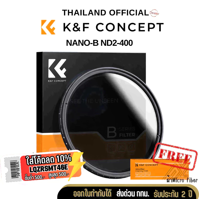 ... y - ส่งธรรมดาในประเทศ) คือส่งขนส่งนะครับ** **หมายเหตุเมื่อลูกค้าเลือกช่องทางการจัดส่งมาแล้วจะไม่สามารถเปลี่ยนแปลงภายหลังได้** - ไม่เหมาะกับเลนส์ Wide เนื่องจากหากปรับความมืดเกิน 50% - จะเกิด X-Cross สำหรับเลนส์ Wide แนะนำให้ใช้เป็นตัวND2-ND32 หรือ แบบ Fixed ND แทนนะครับ - "ND Filter นี้ จะไม่สามารถปิดฝาได้" สต็อบ : 9stop ความหนา : 7mm. การเคลือบ : 8layers -ออปติกด้านนอกที่กว้างขึ้นช่วยลดขอบมืดในมุมกว้าง ผลิตจากกระจกออปติคอลคุณภาพสูงด้วยเทคโนโลยี K&F Concept -ช่วยลดแสงจาก 1 ถึง 9 f-stops กรอบฟิลเตอร์มีขนาดบาง -ฟิลเตอร์ Neutral Density (ND) สามารถลดความเข้มของแสงได้โดยไม่ต้องเปลี่ยนสี ใช้ความเร็วชัตเตอร์ต่ำภายใต้แสงแดดจ้า มีรูรับแสงขนาดใหญ่เพื่อสร้างระยะชัดลึกได้อย่างง่ายดาย พกฟิลเตอร์เดียวที่มีความสามารถเหมือนกันกับ ND2, ND4, ND8 และ ND400 • Manufactured by a professional team for photography enthusiasts to provide a very exciting experience. 100% Satisfaction Guaranteed. • High quality product made of import optics glass and resin,top level of transmittance. Metal sealing ring instead of the plastic sealing ring, better tightness, avoids fall or loose. ● ประกันศูนย์ K&F ไทย 2 ปี ---------------------------------------- หมายเหตุ ✔️สินค้าทุกชิ้นของทางร้าน เป็นสินค้าใหม่ ของแท้ 100% สามารถออกใบกำกับภาษีเต็มรูปแบบได้ ✔️บริษัทฯ ยินดีรับเปลี่ยน / คืนสินค้า ภายใน 7 วัน ✔️เก็บเงินปลายทางได้ สินค้าเสียหายจากโรงงานหรือซอฟแวร์มีปัญหาสามารถเคลมได้ หากสินค้าชำรุดหรือเสียหายอันเกิดมาจากการใช้งาน ขอสงวนสิทธิ์ในการรับประกันสินค้า ✔️ ระยะเวลาในการตรวจสอบ 7-14 วัน ทำการ หลังจากบริษัทได้รับสินค้ากลับจากลูกค้า ✔️ สินค้ามีปัญหาภายใน 7 วัน การส่งสินค้ากลับ ต้องถึงบริษัทภายในระยะเวลา 7 วัน หลังจากวันที่ลูกค้าได้รับสินค้า มิเช่นนั้นบริษัทจะถือว่าเกินระยะเวลารับประกัน 7 วัน ✔️โปรดเก็บใบเสร็จและอุปกรณ์ครบกล่องเพื่อใช้ในการรับประกัน ✔️การรับประกันสินค้าไม่ครอบคลุมถึงสินค้าที่เป็นของแถม 📹โปรดถ่ายวิดีโอตอนแกะกล่องพัสดุและเช็คสินค้าทุกครั้ง หากไม่มีวิดีโอมายืนยันกรณีสินค้าเสียหายหรือสินค้า ไม่ครบ กรณีมีข้อพิพาทคำตัดสินของบริษัทฯ ถือเป็นที่สิ้นสุด สงวนสิทธิ์ในการเปลี่ยนแปลงเงื่อนไขโดยไม่ต้องแจ้งให้ทราบล่วงหน้า