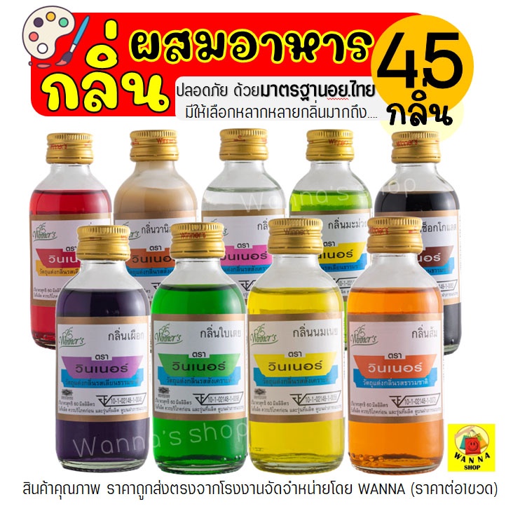 🔥ส่งฟรี🔥 กลิ่นผสมอาหาร วินเนอร์ ขนาด 60 ml(มีให้เลือกถึง45สี!) แต่งกลิ่นขนม แต่งกลิ่นวนิลา แต่งกลิ่นใบเตย แต่งกลิ่นนมแมว