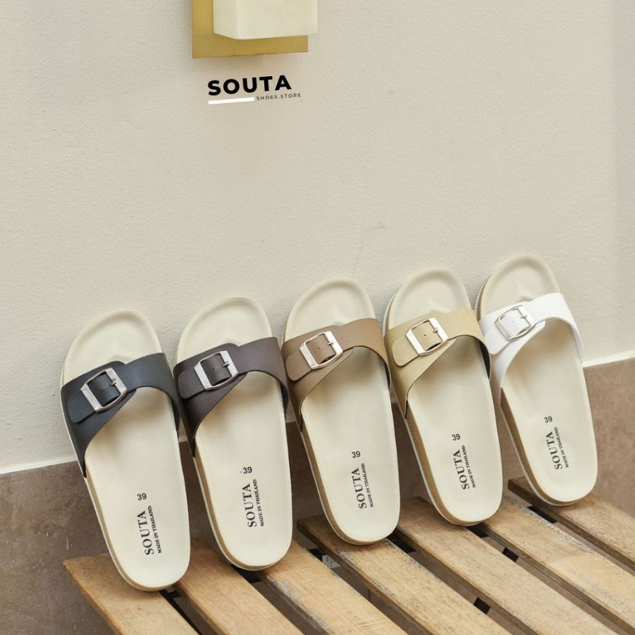 🌷SOUTA 🌷รองเท้าแตะแฟชั่น รองเท้าแตะสไตล์วินเทจ สวมใส่สบาย คุ้มค่าเกินราคา 💯 -ผ้าหนังเทียม หนา 2มิล คงทนต่อการใช้งาน ด้านในมีซับผ้านิ่ม -เข็มขัดสามารถปรับระดับความกระชับได้ 3 ระดับ -ใช้โฟมพิเศษ ปูบนพื้นรองเท้า เพื่อสัมผัสที่นุ่มสบายเท้า -พื้นล่างใช้โฟมEVA ที่มีน้ำหนักเบา สบายต่อการเดิน มี