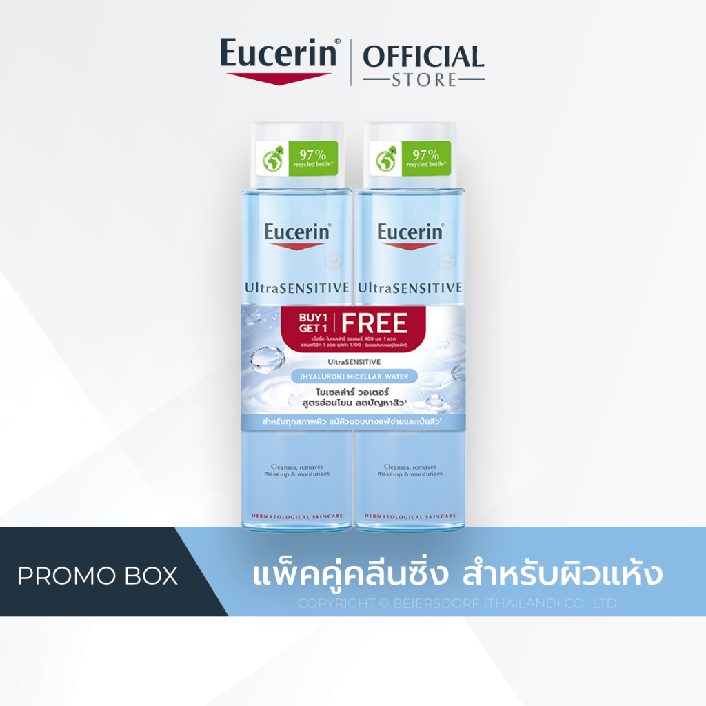 [เซตสุดคุ้ม]Eucerin UltraSENSITIVE[HYALURON]MICELLAR WATER 400MLx2ยูเซอรินอัลตร้าเซ็นซิทีฟ[ไฮยารูลอน]ไมเซลล่าร์วอเตอร์x2