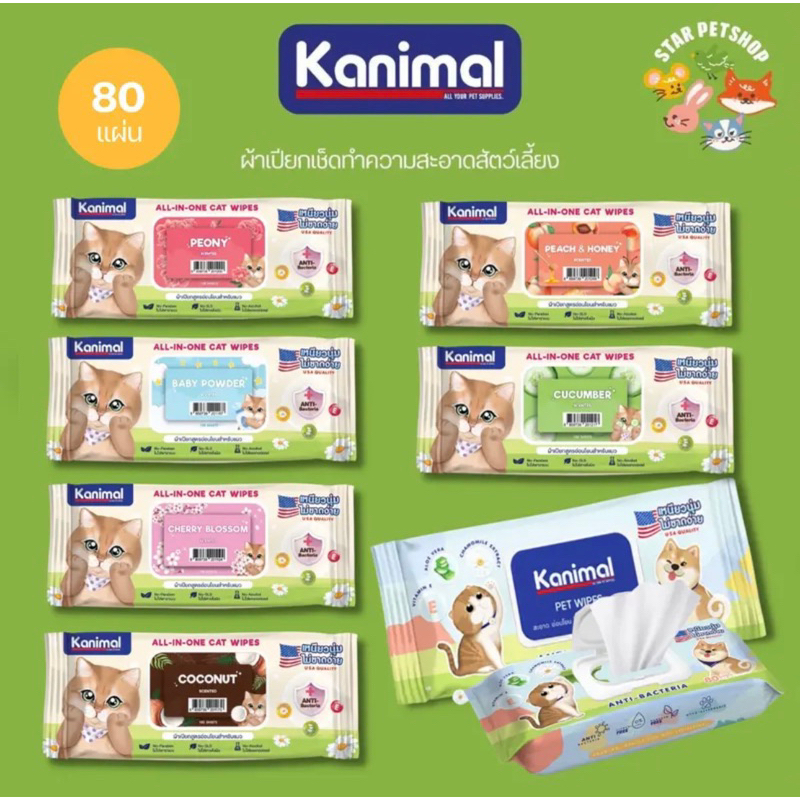 ⚠️โปรดอ่านแอบเลี้ยงแจ้งทางแชทเท่านั้นนะคะ 🚛 ส่งสินค้าทุกวันตัดรอบ 11 โมงค่ะ Kanimal Pet Wipes ผ้าเปียกเช็ดทำความสะอาดสัตว์เลี้ยง สะอาด อ่อนโยน ไม่ระคายเคือง จำนวน 80 แผ่น ✅ เนื้อผ้าอย่างดี หนานุ่มเป็นพิเศษ ✅ ดับกลิ่นตัวอย่างมีประสิทธิภาพ ✅ กำจัดสิ่งสกปรกได้เป็นอย่างดี ✅ ฆ่าเชื้อโรค an