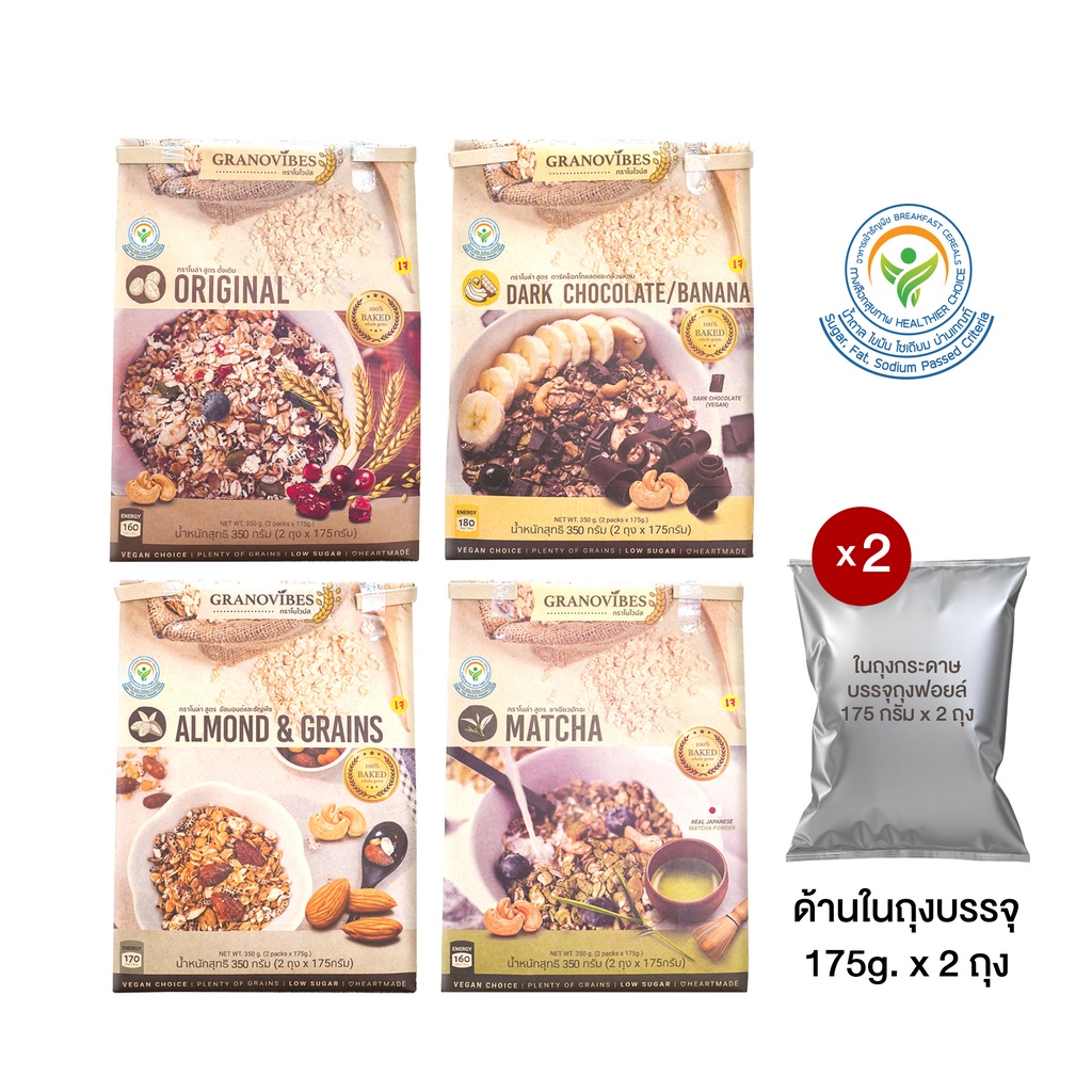 ... ลิตช็อกโกแลตผสมถั่ว กับช็อกโกแลตธรรมดา ซึ่งใช้พื้นที่จัดเก็บวัตถุดิบร่วมกัน ในส่วนของช็อกโกแลตธรรมดาก็มีโอกาสได้รับการปนเปื้อนจากถั่วได้ จึงเป็นเหตุให้ต้องระบุในฉลากของช็อกโกแลตธรรมดาว่า "อาจมีส่วนผสมของถั่ว" ดังนี้เป็นต้นค่ะ มีทั้งหมด 4 สูตรให้เลือก 1. สูตร ดาร์คช็อคกโกแลตและกล้วยหอม > Best Seller! 2. สูตร อัลมอนด์และธัญพืช 3. สูตร ออริจิน่อล 4. สูตร มัทฉะ จุดเด่นของ “กราโนไวบ์ส” - ใช้ข้าวโอ๊ตเต็มเมล็ด - ผสมถั่วและธัญพืชไม่ขัดสีหลากหลายชนิด - รสชาติไม่จัด เน้นสุขภาพ - ใช้วัตถุดิบที่คัดสรรอย่างดีในการผลิตกราโนไวบ์ส ทานได้ทุกวัน ไม่ต้องอดอาหาร สามารถทานแทนมื้อเช้า หรือมื้อเย็น (คู่กับนม/นมถั่วเหลือง/โยเกิร์ต) ✅ Vegan / มังสวัรติ ✅ ข้าวโอ๊ต และธัญพืช ✅ อิ่มท้องนาน ได้ประโยชน์ ✅ หวานน้อย ✅ ทานได้ทุกวัน ❌ ไม่ใส่สารกันเสีย ❌ ไม่แต่งกลิ่น ไม่ใส่สี ❌ ไม่มีนม เนย ไข่ 📣 หมายเหตุ (27/04/2023) 1. ทางบริษัทฯ ขอสงวนสิทธิ์ ในการรับผิดชอบใดๆ อันเนื่องจากข้อผิดพลาดทางการพิมพ์ (ผิด/ตก) 2. ทางบริษัทฯ ขอสงวนสิทธิ์ ในการเปลี่ยนแปลงราคาและโปรโมชั่น โดยไม่แจ้งให้ทราบล่วงหน้า #กราโนไวบ์ส #Granovibes #กราโนล่า
