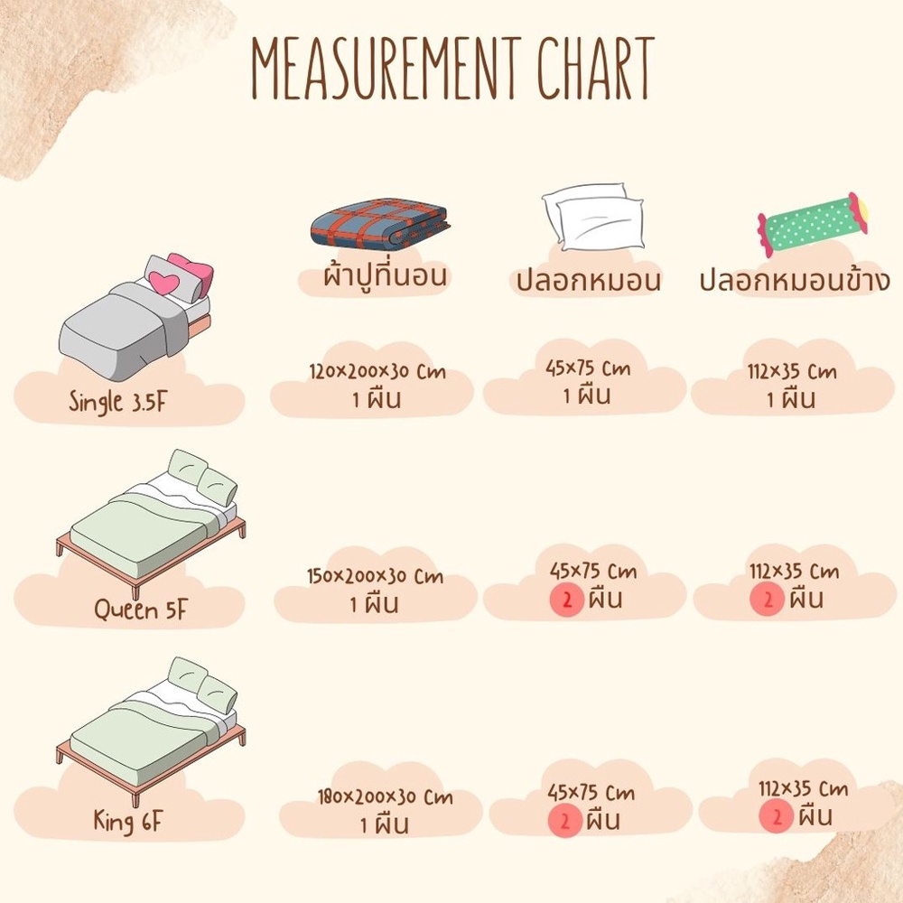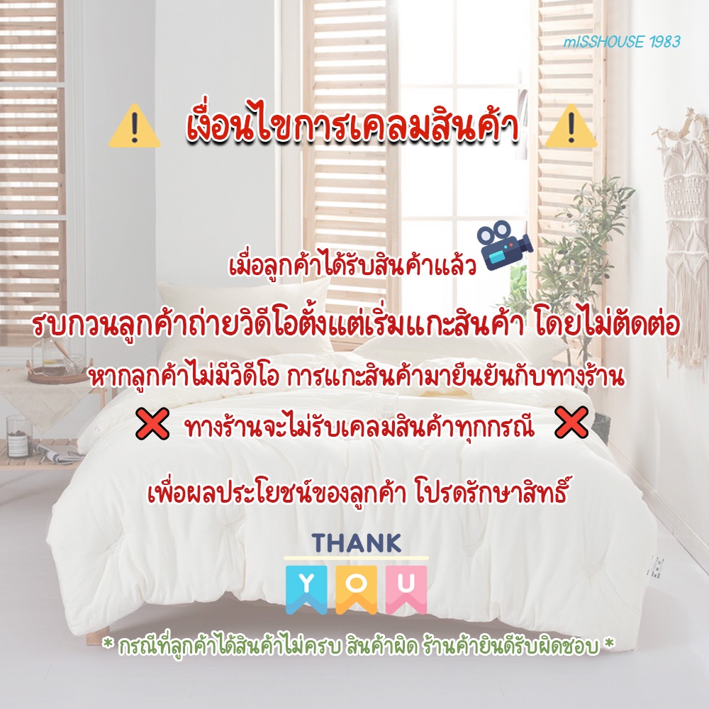 ... ง 6-11นิ้ว 🍭ปลอกหมอน 2 ชื้น 🍭หมอนข้าง 2 ชิ้น 🍭ผ้าปู 1 🐱 6ฟุต (king) ได้ 5 ชิ้นรัดมุมสูง 6-11นิ้ว 🍭ปลอกหมอน 2 ชิ้น 🍭หมอนข้าง 2 ชิ้น 🍭ผ้าปู 1 🐱Single size 3.5 ft =Pillow case 1 + bolster case 2 + bed sheet 1 🐱queen size 5 ft = Pillow case 2 + bolster case 2 + bed sheet 1 🐱king size 6 ft = Pillow case 2 + bolster case 2 + bed sheet 1 🏠ขนาดที่นอนทั่วไป 3.5ฟุต(singer)=110*200cm // 5ฟุต(queen)=150*200cm // 6ฟุต (king)=180*200cm 🏠ขนาดปลอกหมอน ( 45cm *75cm )ขนาดมาตรฐานทั่วไป 🏠ขนาดปลอกหมอนข้าง (112 cm *35 cm)ขนาดมาตรฐานทั่วไป 🐱เลือกลายที่ถูกใจ และสำรองลายที่ชอบตามลำดับไว้3ลาย เผื่อสินค้าหมดจ้า 🐱สามารถ กดเข้าไปดูสินค้าในร้านค้าเพิ่มเติม หากหาไม่เจอให้ทักแชทสอบถามได้ค่า 🕊เกรดA+สินค้าดีมีคุณภาพ ราคาถูกๆสบายๆ 🕊สีไม่ตก ผ้าไม่หดไม่ย้วย ไม่เป็นขน 🕊ผ้าหนานุ่ม ไม่ฉีกขาดง่าย ใช้งานได้นาน 🕊เป็นผ้าcotton 30%ผสมโพลีเอสเตอร์70% 🔥หากลูกค้าได้รับสินค้าผิดสี ชำรุด นับตั้งแต่วันที่ลูกค้าได้รับสินค้าภายใน 7 วัน ให้ลูกค้าถ่ายรูปสินค้าที่ได้รับส่งมาทางแชท แจ้งปัญหา ได้คะ ทางร้านยินดีเปลี่ยนสินค้า/คืนเงิน คะ 🔥กรณีที่ลูกค้าต้องส่งสินค้ามาเปลี่ยน ให้ส่งสินค้าและแจ้งเลขพัสดุภายใน 3 วัน นับจากวันที่แจ้งกับทางร้าน หากเกินวันที่กำหนด ทางร้านจะไม่รับเคลมสินค้าทุกกรณี 🔥สินค้าทุกชิ้นของทางร้านรับประกันสินค้า 7 วัน **อย่าใจร้อน รีบ หัก ดาว ทางร้านนะคะ** ขอบคุณคะ 🔥หมายเหตุ: กรณีที่ลูกค้ารีวิวและให้ดาวกับทางร้านแล้ว งดรับเคลมสินค้าทุกกรณีนะคะ 📦 การเคลมสินค้าของร้าน 📦 1. เมื่อรับสินค้าแล้วให้อัดคลิปตั้งแต่กรีดเทปใสแกะพัสดุ ตรวจเช็คความถูกต้องในคลิปให้เสร็จเท่านั้น 2.เมื่อสินค้าไม่ครบ สินค้ามีปัญหา เกินให้แจ้งทางร้านทันที ( ภายใน 24ชม. นับจากการรับสินค้า ) 3.ทางร้านจะรับผิดชอบถ้าหาก ทางร้านจัดส่งผิดเเบบ/ สินค้ามีตำหนิขนาดใหญ่จนใช้งานไม่ได้ 4.ไม่เครมสินค้าที่ซักแล้ว ❤️🔥อัดคลิปก่อนกรีดเทปกล่องทุกครั้ง ไม่มีคลิปไม่รับผิดชอบทุกกรณี❤️🔥 รบกวนอ่านกันด้วยน๊า จะได้ไม่ดราม่าในการเคลม ขอบคุณคะ🙏🏻 #ผ้าปูที่นอน #ผ้าปู #ผ้าปูที่นอนราคาถูก #ผ้าปูรัดมุม #ผ้าปูที่นอน3.5ฟุต #ผ้าปูที่นอนราคาส่ง #ผ้าปูที่นอน5ฟุต #ผ้าปูที่นอน6ฟุต #ผ้าปูที่นอนสีพื้น #ผ้าปูที่นอนเกรดพรีเมี่ยม #ชุดผ้าปู