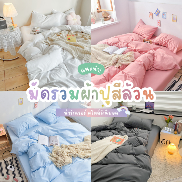 ถูกสุด🎉🎉ผ้าปูที่นอนสีล้วน รวมปลอกหมอนและปลอกหมอนข้าง ขนาด 3.5ฟุต / 5ฟุต / 6ฟุต💕