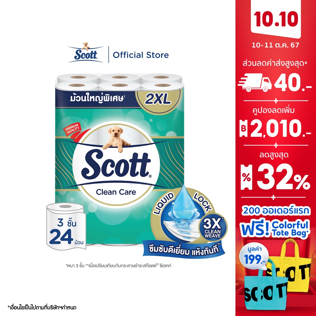สก๊อตต์ คลีนแคร์ กระดาษชำระ ม้วนใหญ่พิเศษ 2XL หนา 3ชั้น ขนาด 24 ม้วน SCOTT CLEAN CARE Toilet Tissue 2XL 3 Ply 24 Rolls