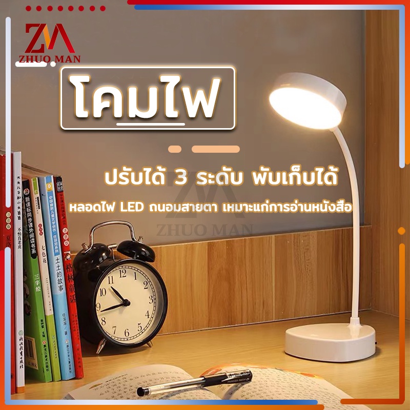 โคมไฟตั้งโต๊ะ โคมไฟหัวเตียง led ปรับโคมไฟอ่านหนังสือ แสงได้3สี พับเก็บได้
