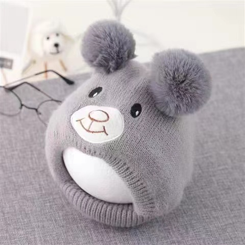 B6 หมวกเด็ก 2เดือน-2ปี รอบหัว:40-50 cm. หมวกไหมพรมแบบผูกคาง แต่งลายหมี หมวกแฟชั่นเด็ก