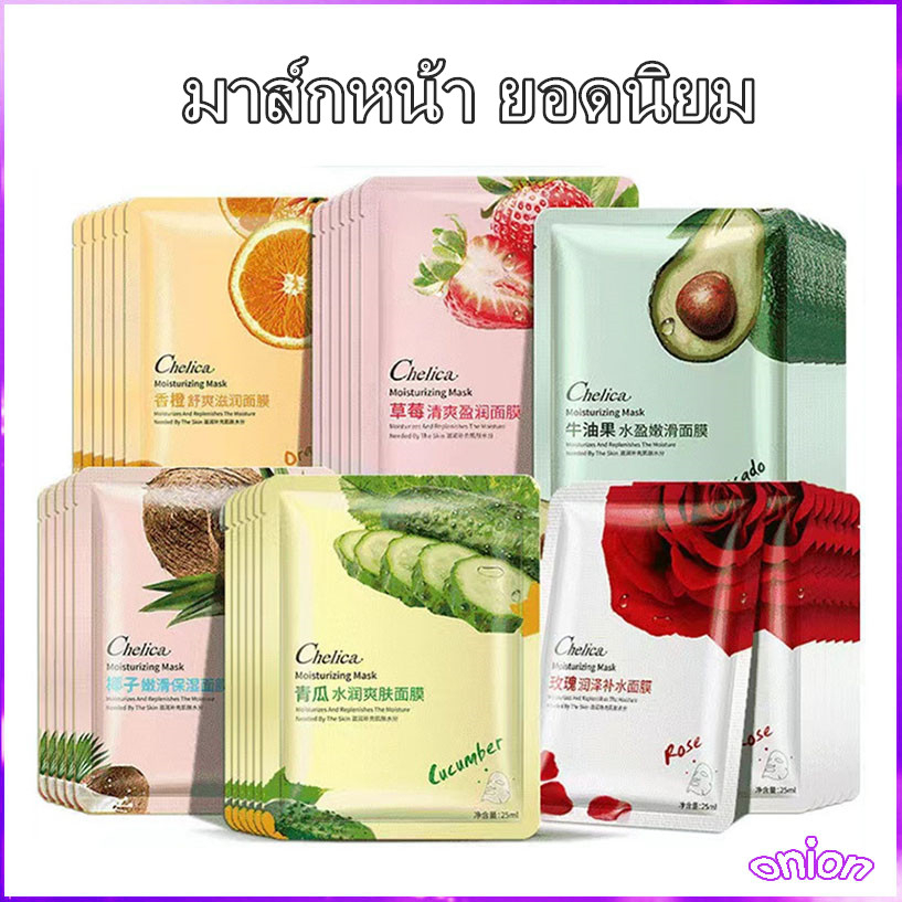 ... ้าที่ซื้อไปค่ะ การใช้ผลิตภัณฑ์บำรุงผิวต่างๆ ควรทดสอบด้วยตนเองทุกครั้ง เนื่องจากแต่ละคนมีสภาพผิวและการแพ้ที่แตกต่างกัน ทำให้ไม่สามารถการันตีให้ได้ว่าทุกคนจะไม่เกิดอาการแพ้ค่ะ ดังนั้นควรทดสอบกับตนเองดีที่สุดค่ะ 💖คุณสมบัติ มาคมีความเย็น ช่วยเติมความชุ่มชื่นให้กับผิว ให้ผิวกระจ่างใส ดูอิ่มน้ำ มีกลิ่นหอม สดชื่น 💖สำหรับผู้ที่มีปัญหาผิวหน้าขาดความสมดุล เช่น หน้าแห้ง หน้ามัน รูขุมขนกว้าง เป็นสิวหัวดำ เป็นต้น โดยใช้เป็นประจำจะช่วยกระชับรูขุมขน เพิ่มความชุ่มชื้น ฟื้นฟูผิวควบคุมความมัน ผสมกรดไฮยาลูโรนิกทำให้ผิวอวบอิ่มชุ่มน้ำ เหมือนมีแผ่นฟิล์มเคลือบบนใบหน้า มาส์กหน้า ยอดนิยม สูตร ลดริ้วรอย หน้าใส กระชับรูขุมขน บำรุงผิว ลดสิว -Strawberry🍓: ไวท์เทนนิ่ง ชะลอกระบวนการออกซิเดชั่น ลดเลือนริ้วรอย และปรับผิวให้อ่อนนุ่ม ให้คุณค่าทางโภชนาการสำหรับผิวที่เรียบเนียนและเป็นธรรม ฟื้นฟูสภาพผิว และเพิ่มความยืดหยุ่นของผิว -Orange🍊: ผิวขาวใส ขจัดเซลล์ผิวที่ตายแล้ว ทำความสะอาดและคลายรูขุมขน ต่อต้านริ้วรอย รูขุมขนเล็กลง สนับสนุนและดูแลผิวที่เป็นสิว หลังสิว ลดรอยดำ... -Avocado🥑: ต่อต้านริ้วรอย, ลดขนาดรูขุมขนและฟื้นฟูผิว ช่วยให้ผิวเนียนนุ่ม บำรุงผิวให้สารอาหารและช่วยให้ผิวแข็งแรงขาวและเรียบเนียน -Coconut 🥥: ให้สารอาหารช่วยให้ผิวเรียบเนียน ชะลอกระบวนการออกซิเดชั่นและการก่อตัวของเมลานิน รูขุมขนเล็กลง ผิวขาวขึ้น และฟื้นฟูผิว -Rose🌹: ช่วยให้ผิวขาว รูขุมขนเล็กลง และต่อต้านริ้วรอย ให้ความชุ่มชื้นและสารอาหารที่จำเป็นในการบำรุงผิวให้เรียบเนียนและกระจ่างใส -Cucumber 🥒: ผิวขาวและรูขุมขนหดตัว นอกจากการบำรุงผิวแล้ว ยังมีผลต่อการดูแลผิวหลังการเกิดสิว สนับสนุนการลดการเกิดสิว ลดจุดด่างดำ และให้ความชุ่มชื่นแก่ผิวที่เรียบเนียน ปริมาณ บรรจุ1 แผ่น /25 ml วิธีใช้ หลังจากขั้นตอนทำความสะอาดผิวหน้า แกะมาสก์ออกจากซองและจัดวางให้พอดีกับใบหน้า *เว้นบริเวณรอบดวงตาและริมปาก ทิ้งไว้ประมาณ 10 - 20 นาที หรือแผ่นมาสก์แห้ง แล้วค่อยดึงออกก่อนจะเริ่มการจะบำรุงผิวหน้าในขั้นตอนต่อไป สำหรับเอสเซ้นส์หรืออาหารผิวส่วนที่เหลือ สามารถนำมาใช้นวดเบาๆ จนซึมลงผิวหน้า หรือนำมาใช้มาเม็ดมาสก์ที่ทางร้านแถมไปให้ได้นะคะ คำเตือน (1) หลีกเลี่ยงการใช้บริเวณที่มีแผล หรือบริเวณที่อาจเกิดการระคายเคืองได้ง่าย (2) หยุดใช้ทันทีหากมีอาการผิดปกติทางผิวหนัง และปรึกษาแพทย์ - อาการผิดปกติ อาทิ ผื่นแดง บวม คัน - อาการผิว