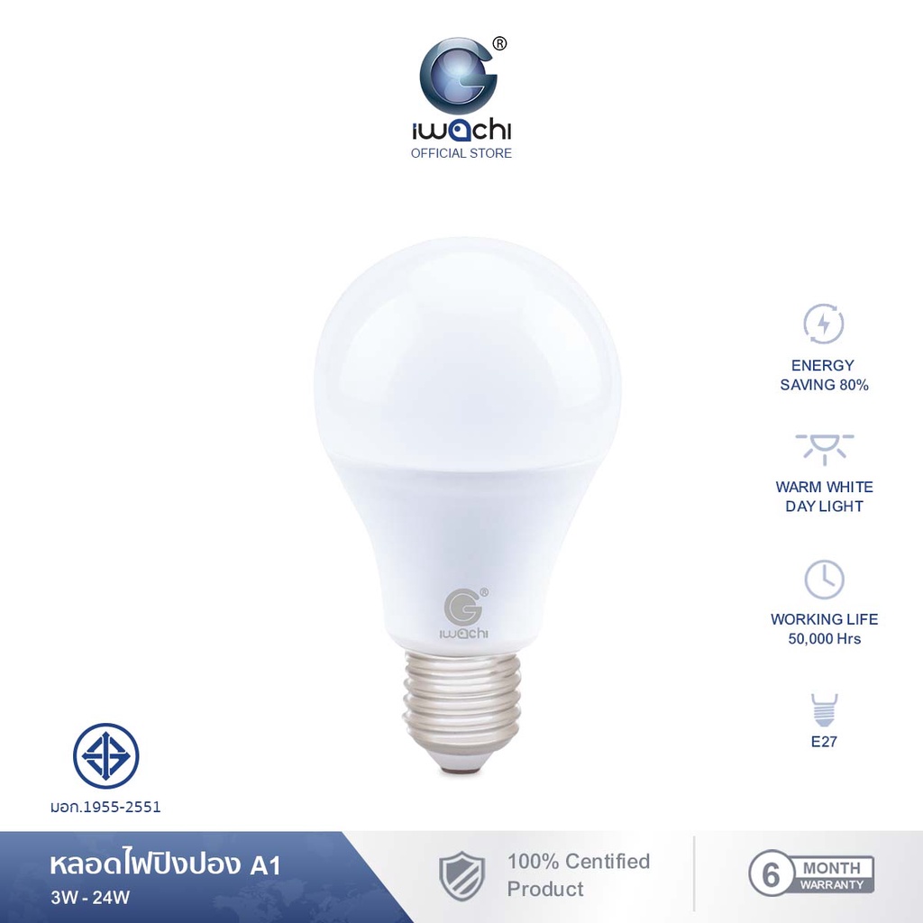 IWACHI หลอดไฟ LED 3W 5W 7W 9W 13W 15W 18W 21W 25W หลอดปิงปอง ขั้ว E27 แสงขาว/แสงวอร์มไวท์ สำหรับโคมไฟภายในบ้าน Bulb light