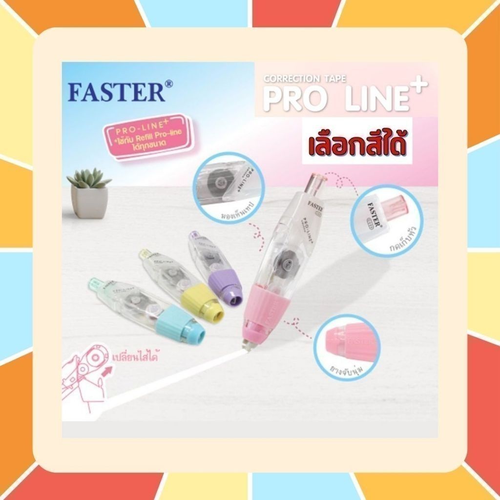 (เลือกสีได้) เทปลบคำผิด FASTER รุ่น Pro Line Plus ฟาสเตอร์ เปลี่ยนไส้เทปได้ กว้าง 4.2 /5/ 6 มม. ยาว 6 ม. [Pro Line Plus]