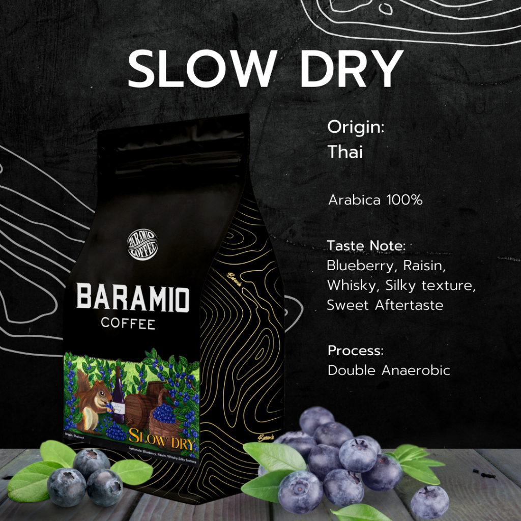 Baramio เมล็ดกาแฟคั่วรุ่น Slow Dry 200g. - 1Kg. l Taste note: Blueberry,Raisin ,Hint of Whiskey