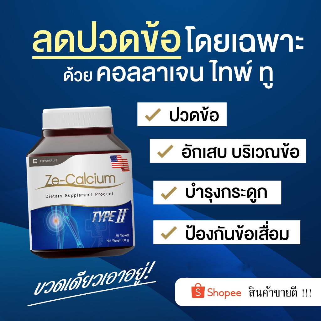 Ze Calcium แคลเซียม บํารุงกระดูก ลดปวดข้อต่อ collagen type ii คอลลาเจน ไทพ์ทู คอลลาเจนสำหรับข้อเข่า